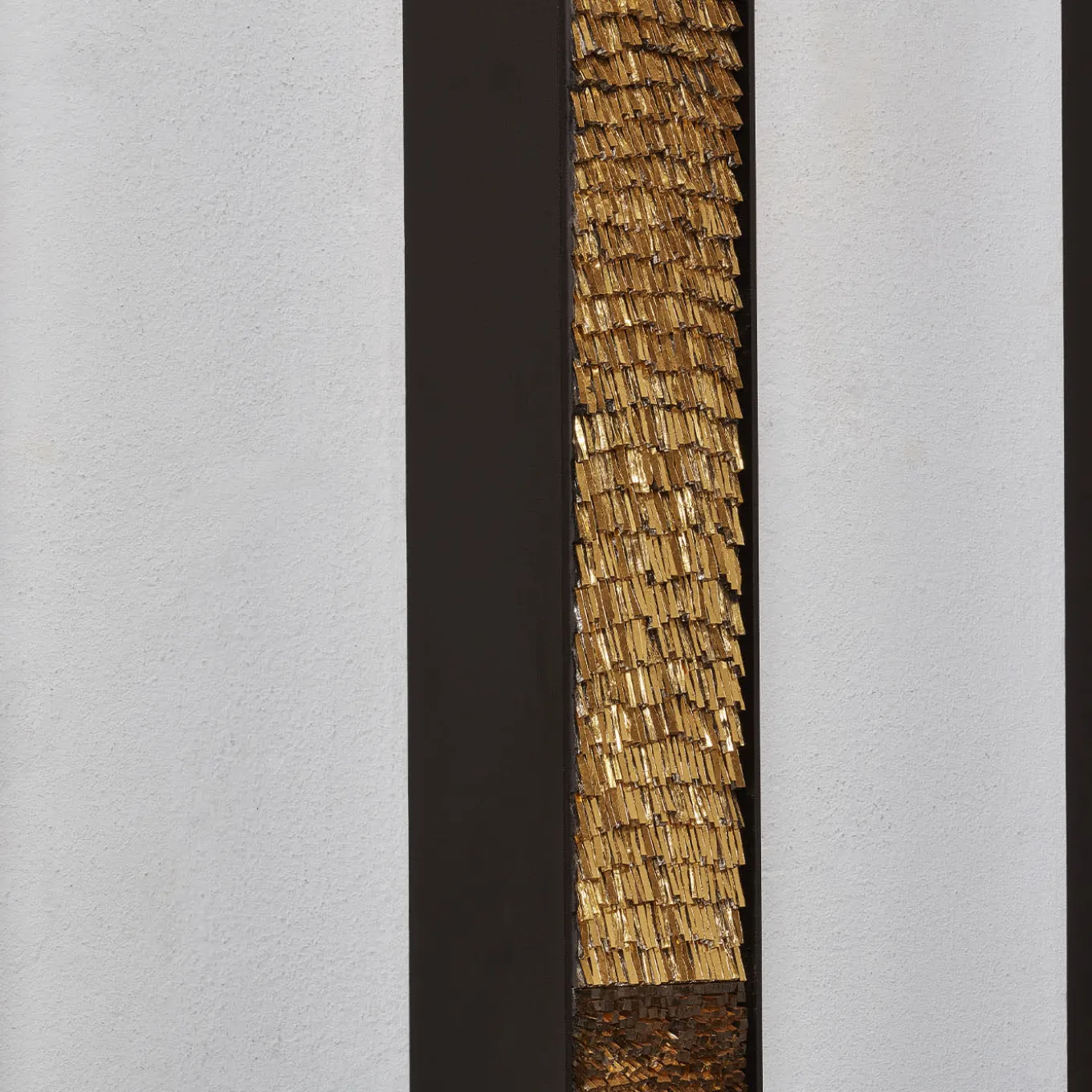 A set of three stunning pieces crafted from glass paste with gold leaf, colorant oxide, and mortar, set on multilayered wood and iron. Each piece showcases a different size: Piece #1 (10 x 10 x 236 cm), Piece #2 (10 x 10 x 158 cm), and Piece #3 (10 x 10 x 80 cm). This captivating collection blends refined materials with artistic expression, making it a perfect addition to any contemporary space or collection.