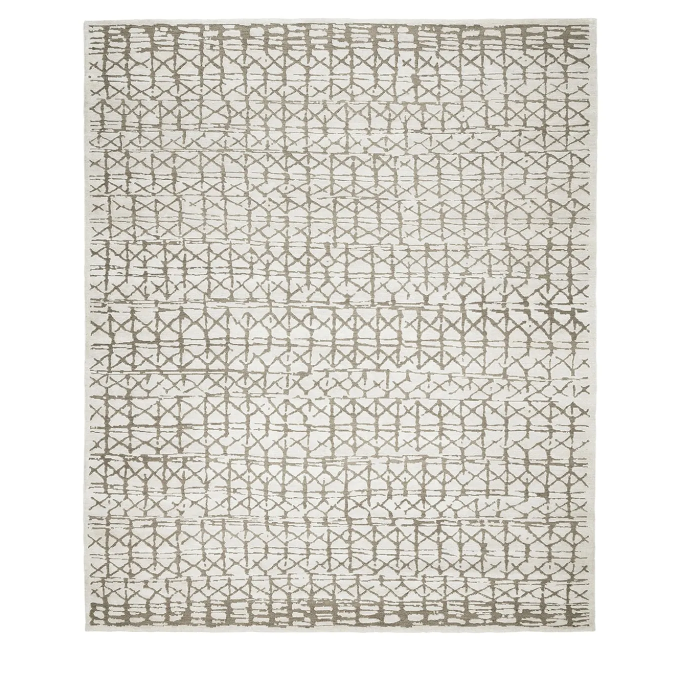 The Naaba rug features a vibrant mesh pattern with a high and low pile for a three-dimensional effect. The dual material design the luxurious embossed silk and the earthy recessed hemp-will suit a variety of styles, offering sophistication and casual elegance to any space. The rug is crafted in Nepal.