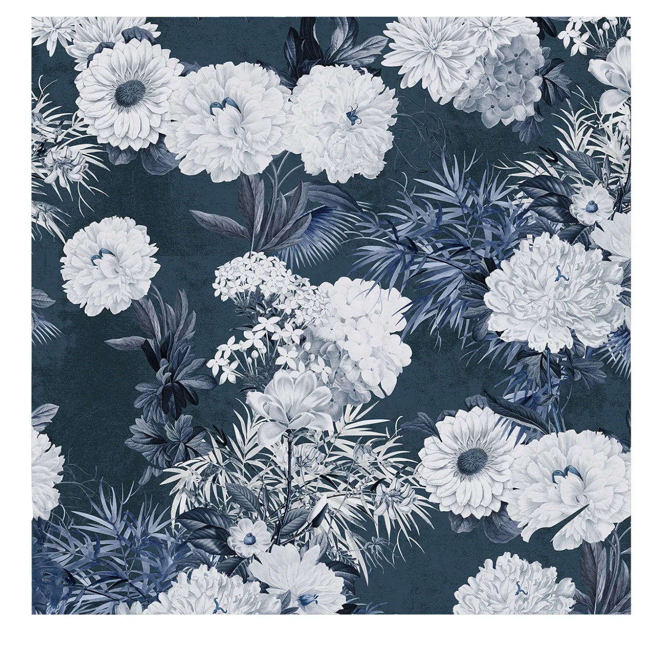 100% vegan and eco-friendly wallpaper, printed in Italy with water-based inks on real paper following 18th-century tradition. The set includes 2 rolls (102″x35″ inches/260x90cm) covering 102″x 70″ inches/260x180cm, with adhesive and easy-to-follow instructions. Bring refined elegance to your interiors with the “Navy Floral Wallpaper”, featuring large white chrysanthemums and peonies set against a deep navy background. This sophisticated botanical design adds depth, charm, and timeless beauty, perfect for statement walls and classic interiors.