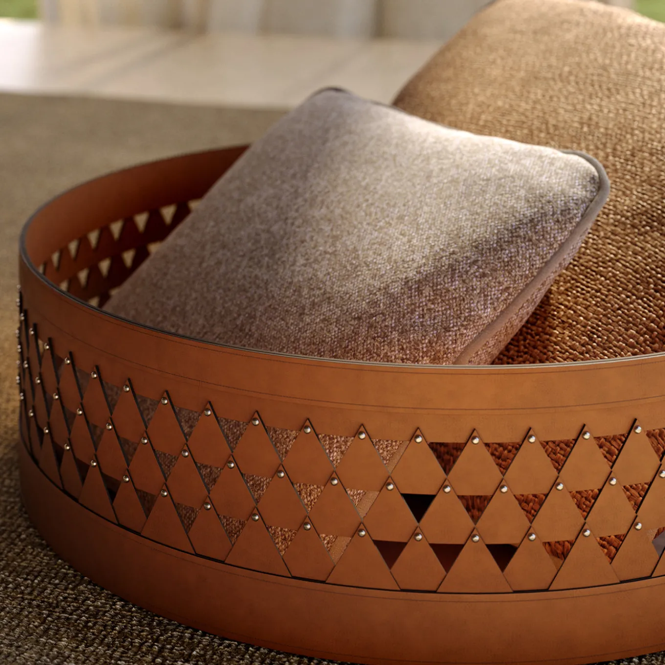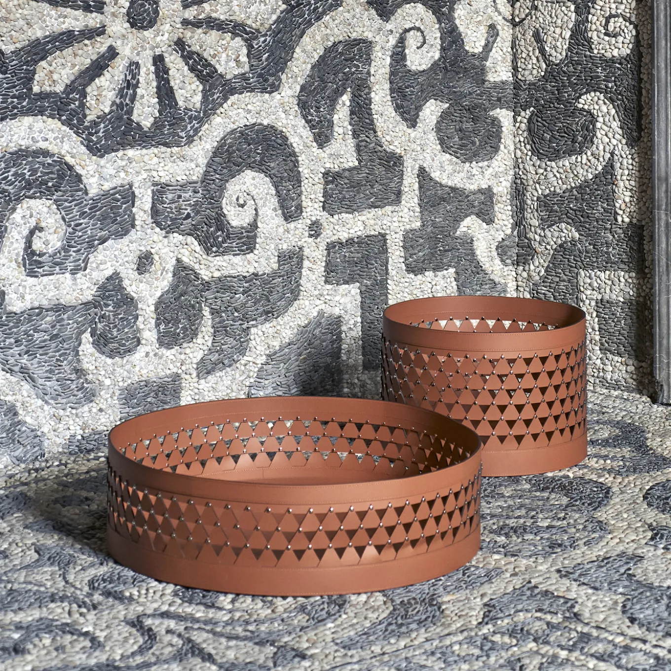 The Nereide basket 70 by STUDIOPEPE features a distinctive diamond-weave pattern that plays with light and shadow, changing subtly throughout the day. Its structured yet delicate design adds a quiet elegance suitable for outdoor living spaces. This medium-sized basket serves as a versatile accent piece, combining craftsmanship with a rhythmic aesthetic that enhances any setting.