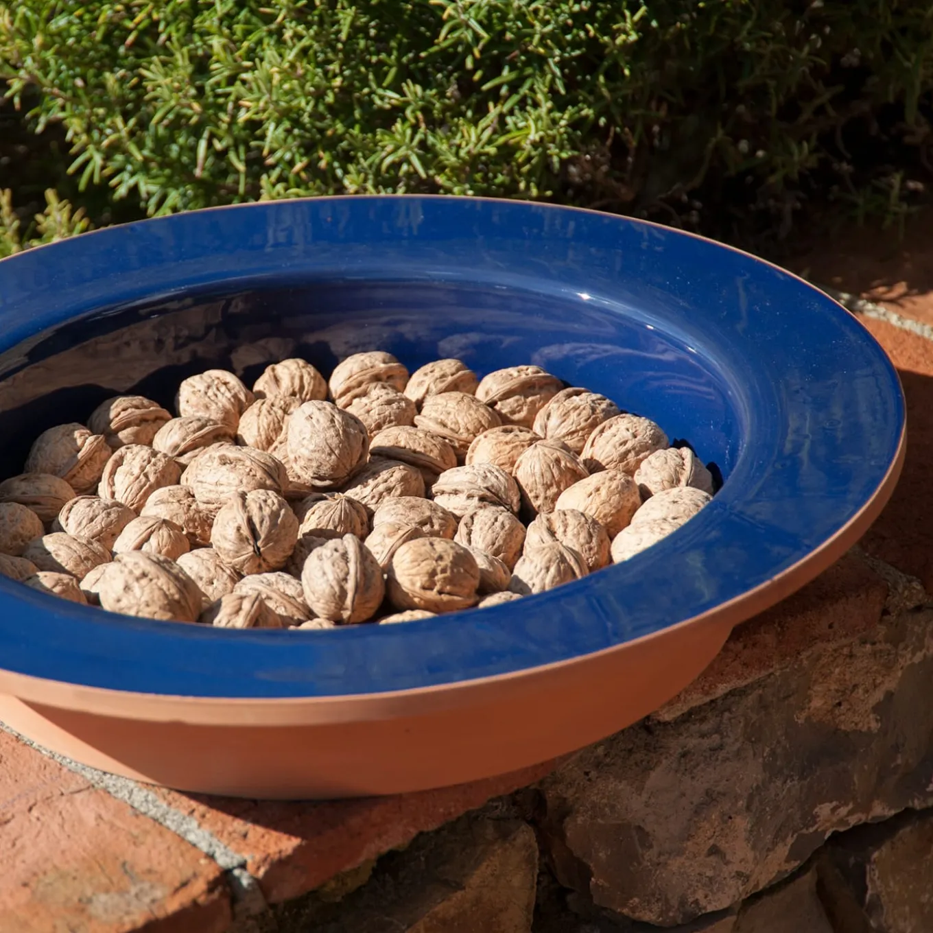 The intensity of ocean depths inspired the shade of blue glaze chosen to accent this one-off artisan centerpiece. Left in its natural terracotta finish on the outside, the rim and internal surface boast a glossy blue glaze that suggests the centerpiece as sophisticated addition to coastal homes. Please consult the Artemest catalog for more color options.
