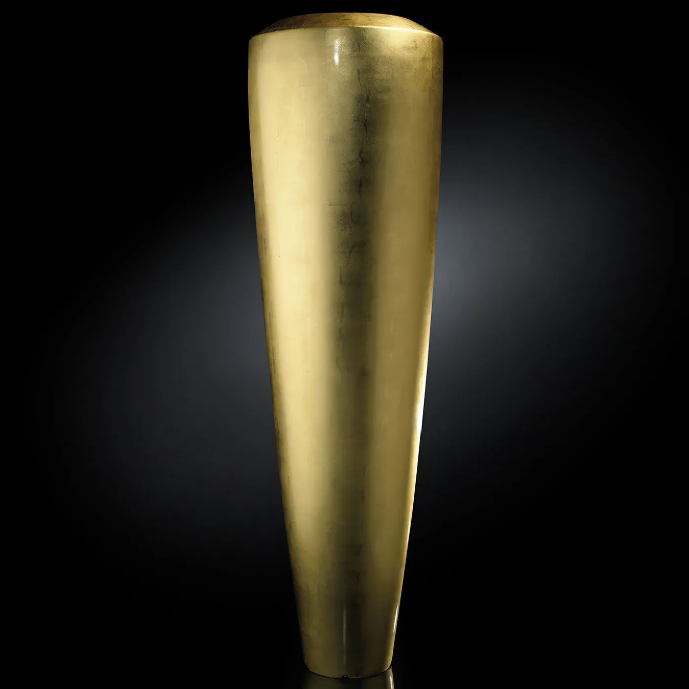This stunning vase is a superb piece of functional decor that will make a statement in a modern and refined living room. Fashioned of LDPE (low-density polyethylene), the defining opaque gold color is obtained through the addition of a gold leaf lending it a unique quality.