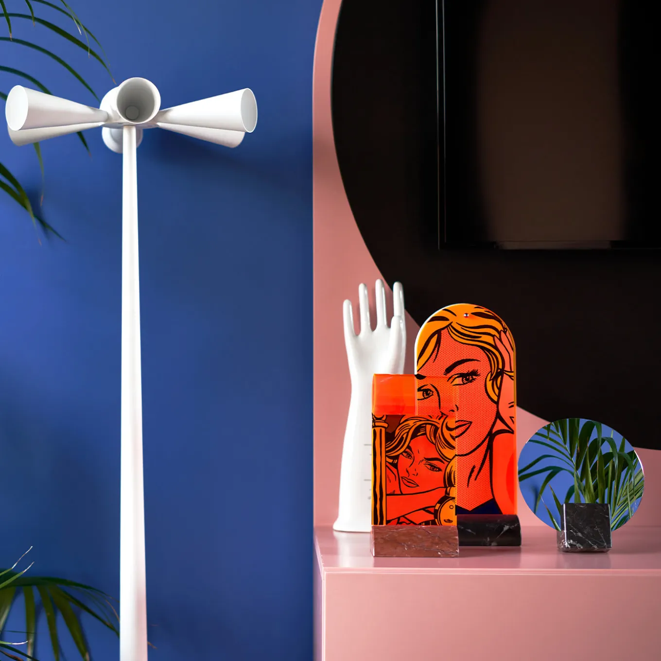 An innovative design by Superstudio, this gorgeous photo holder belongs to a series of small mirrors and a photo holder brilliantly converting industrial scraps into refined design pieces. Through careful and masterful milling procedures, a Red Francia marble piece becomes the precious base for this photo holder, comprised of a sheet of methacrylate rendered in orange and fluorescent magenta.