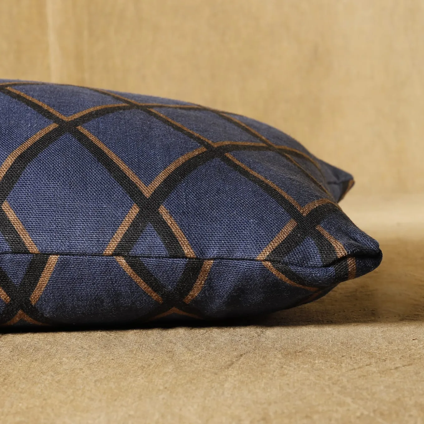 The natural linen canvas Olezzo is made with a special printing technique that is then overdyed. The cushion’s motif evokes an ancient ceramic found in the mythical treasures of Ulysses.