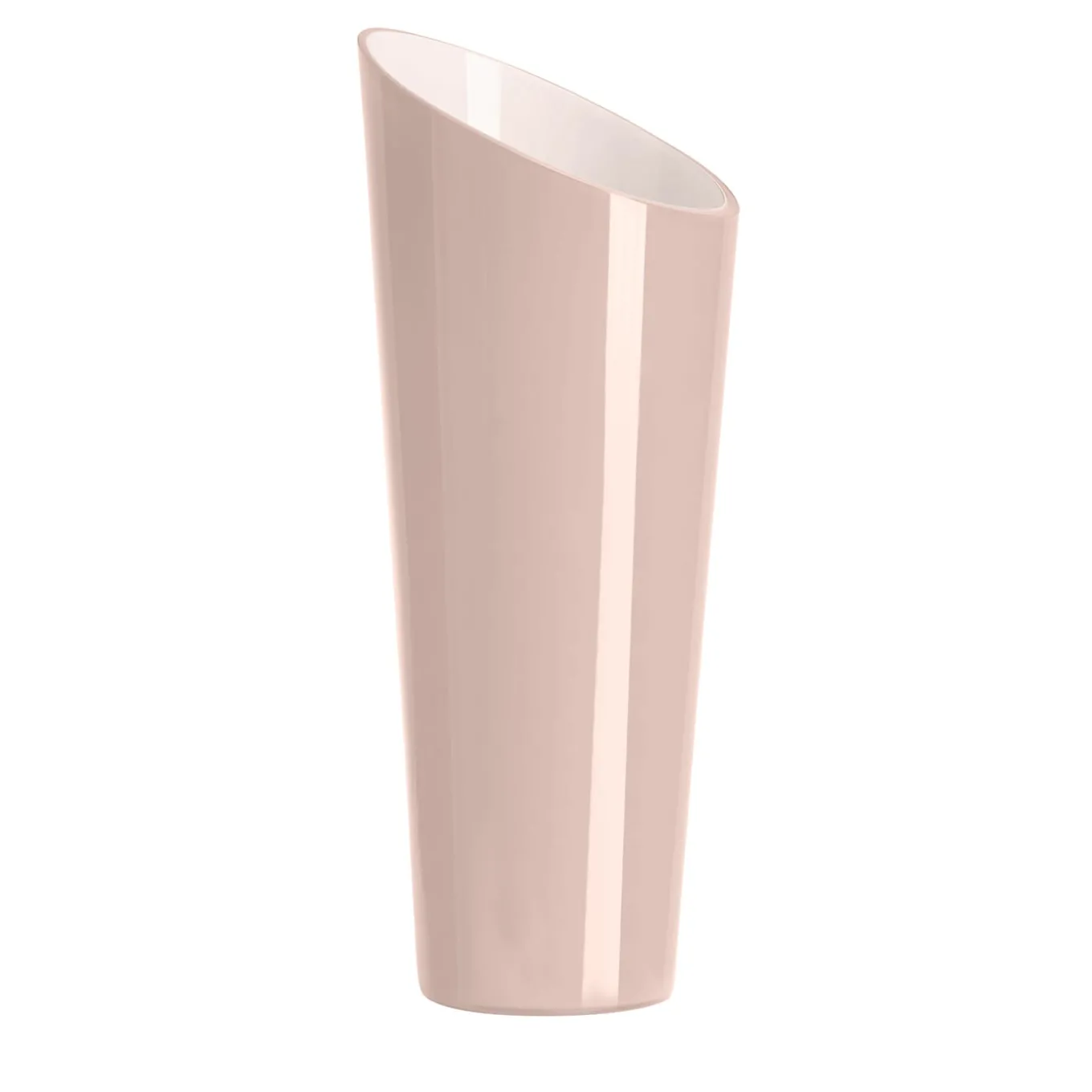 The Orizzonte Oblique vase, crafted from peach and milk-white cased glass, features a bold oblique design achieved through precise cold-cut craftsmanship. This elegant piece brings a striking, modern flair to any space. Perfect as a decorative accent or for displaying flowers, it combines vibrant color with refined artistry for a timeless addition to any interior.