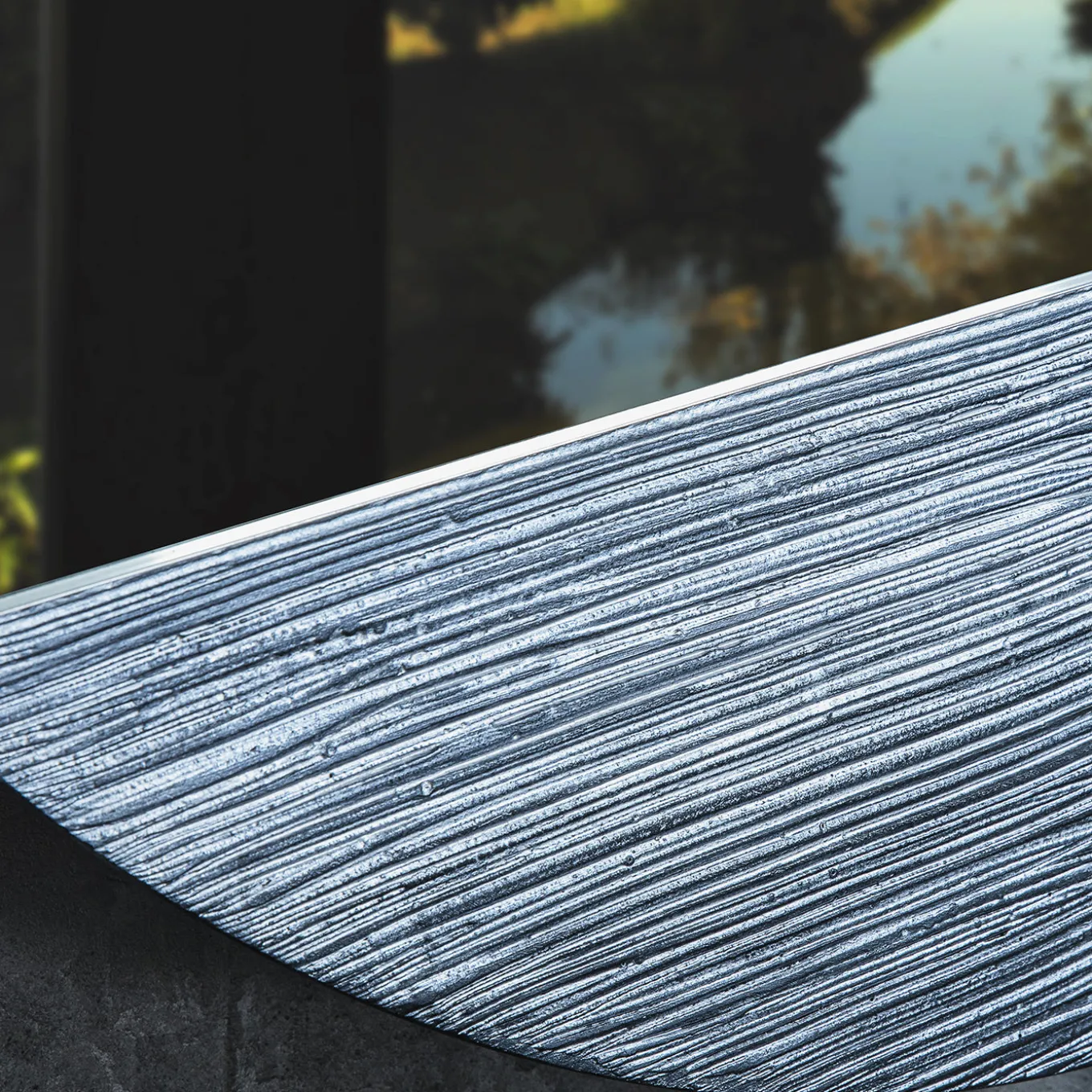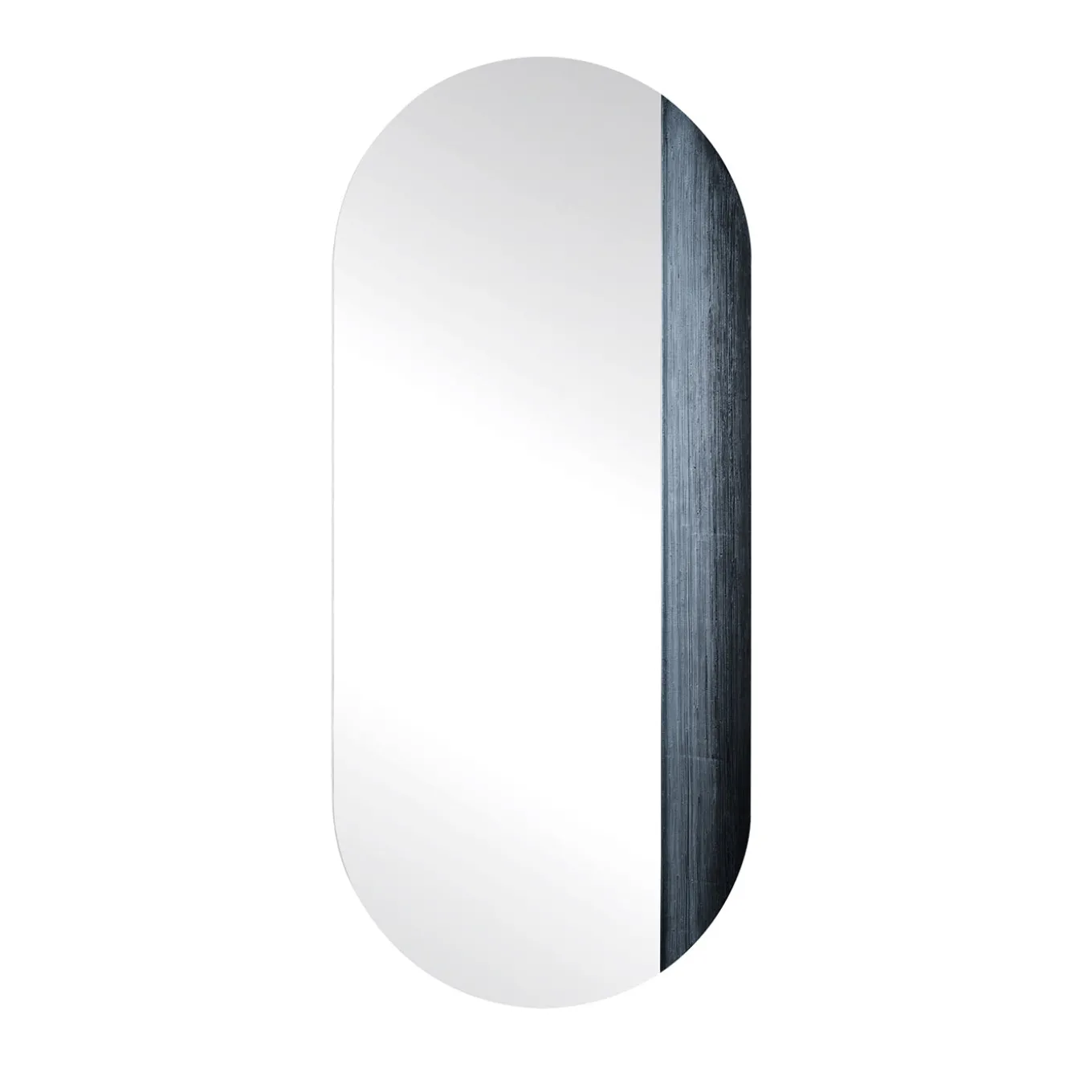 The Orizzonte is a large oval wall mirror featuring a silver troweled resin finish that evokes the interplay of light and shadow across a textured surface. Designed to rotate 90 degrees, this piece offers versatile display options. Each mirror is a unique creation, numbered and certified for authenticity, blending functional design with artistic expression. Upon request it is also available in a smaller version; please contact the Concierge for further information.