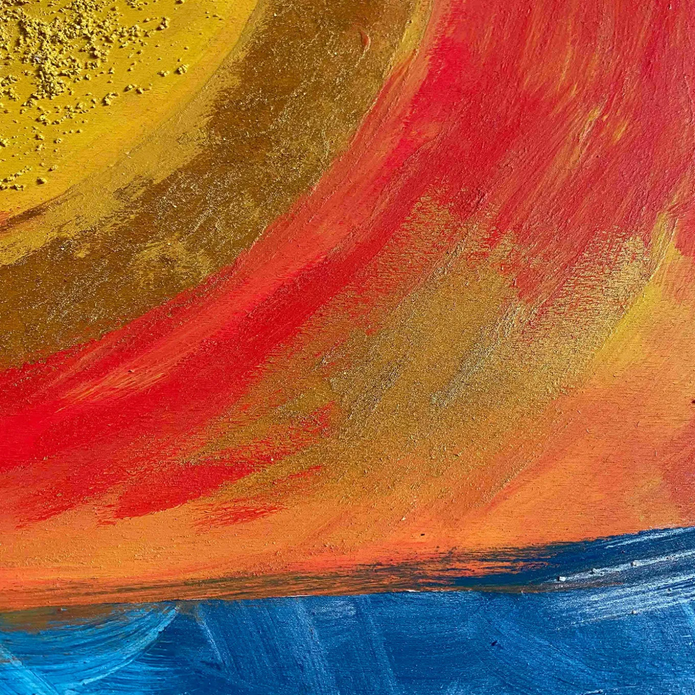 A singular and iconic combination of art and design, this stupendous piece by Mascia Meccani is a wooden decorative panel enriched with two wall hangers. Showcasing a mesmerizing and vivacious juxtaposition of warm and cold tones, the panel is painted by hand adding stucco and sand to the surface. The two cylindrical wall hangers are crafted of cherry wood. This artwork is unique but can be customized in size, with possible variations due to its handcrafted nature.