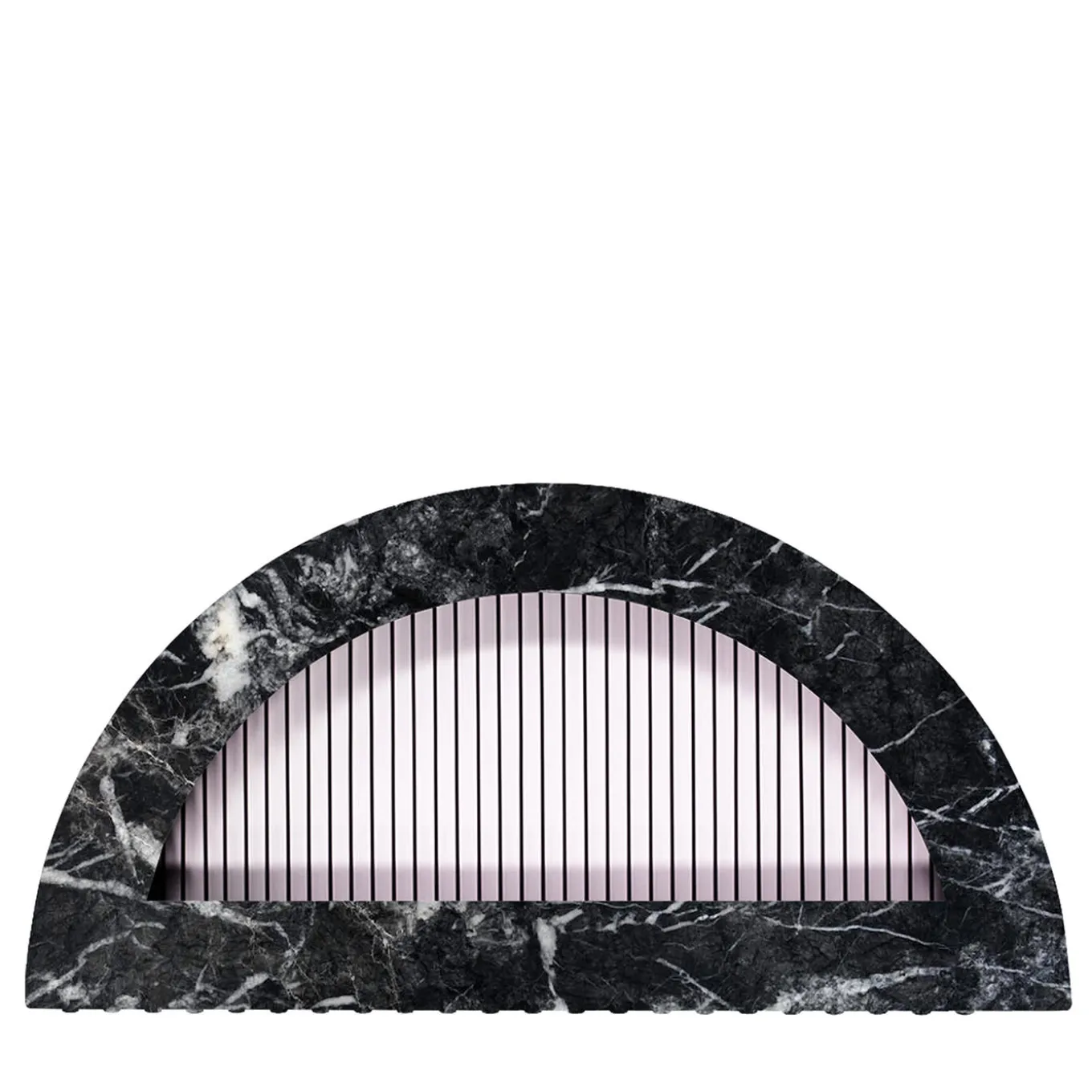 Half circle is part of the ORU Collection, an innovative project of territory, sustainability, craftsmanship and technology. The encounter between PVC, iron and marble form a family of decorative wall elements, between art and design. The essential becomes luxury. The perception of PVC changes, marble welcomes it with enthusiasm, iron holds them together. Four shapes, infinite combinations, the frontier of the usual is crossed, movements shine with unusual embraces between materials.