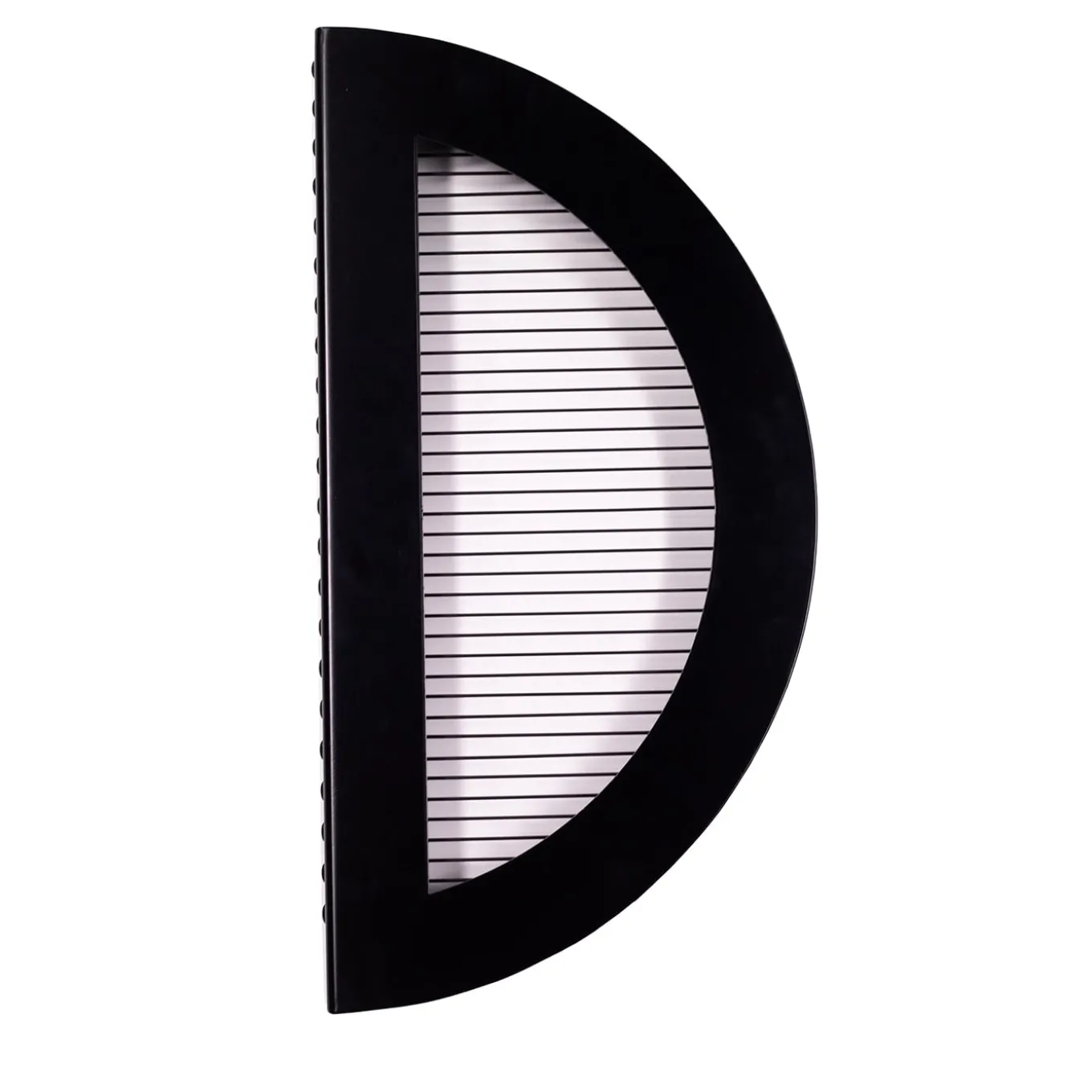 Half Circle Total Black is part of the ORU Collection, an innovative project of territory, sustainability, craftsmanship and technology. PVC meets iron, they fall in love and a family of decorative wall elements, between art and design, is born. Four shapes, infinite combinations, create dialogues, movements and unprecedented suggestions that with elegance of geometries and clean profiles, experimentation, refinement and simplicity dress up environments.