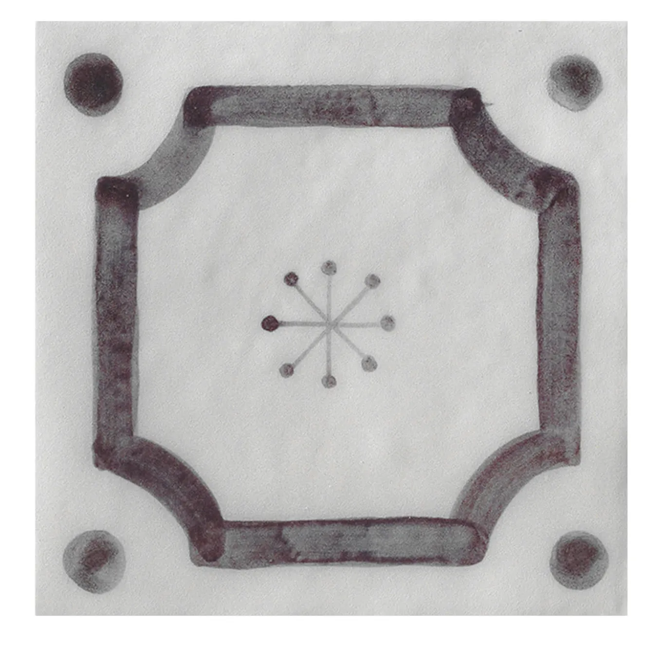 Master artisans carefully hand-painted each of the 24 square tiles composing this refined ceramic set, which is named after a dreamy coastal town in Sardinia. Apt as wall covering only, it boasts a pattern of clean lines and dots in dappled plum that emerge from the white backdrop. Please consult the Artemest catalog for additional color options for diverse tile compositions.