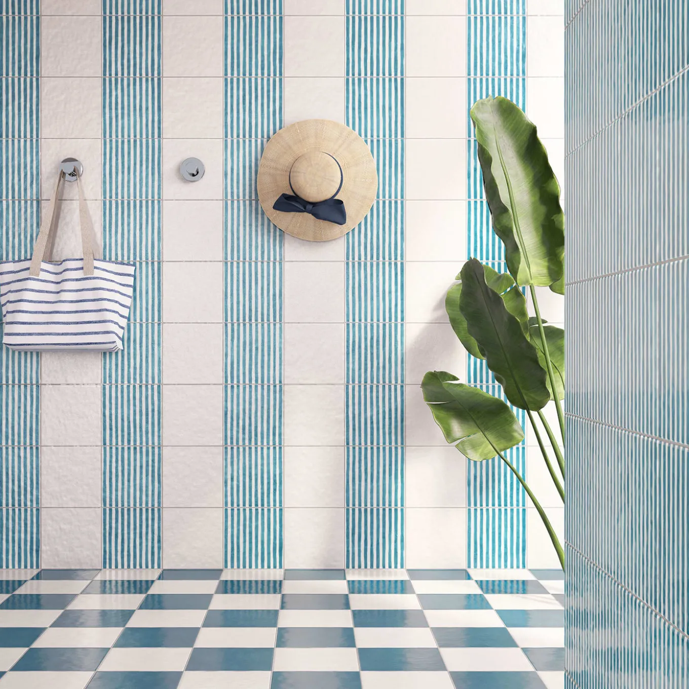 Softly irregular, simple, yet powerful just like Sardinia, blue stripes characterize the hand-painted decoration of this set of 24 ceramic tiles for wall or floor coverings. Offered in a variety of color variants available in the Artemest catalog to achieve colorful and lively compositions, here pictured in an intense blue shade immediately evoking enchanting island landscapes.