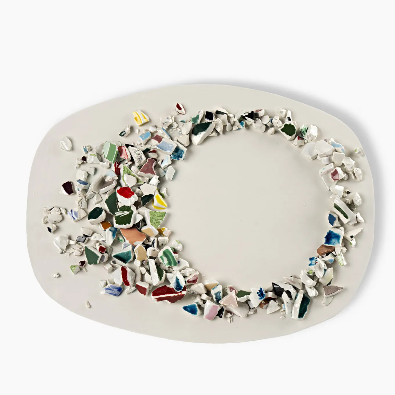 Exuding contemporary flair, this oval ceramic centerpiece embodies designer Duccio Maria Gambi’s personal vision of reuse. Polychrome ceramic fragments reveal this inspiration, which invites one to see Bitossi’s tradition through an exquisitely future-projected lens where sustainability gains its well-deserved central role. The piece was exhibited at the 2023 Salone del Mobile furniture fair in Milan.