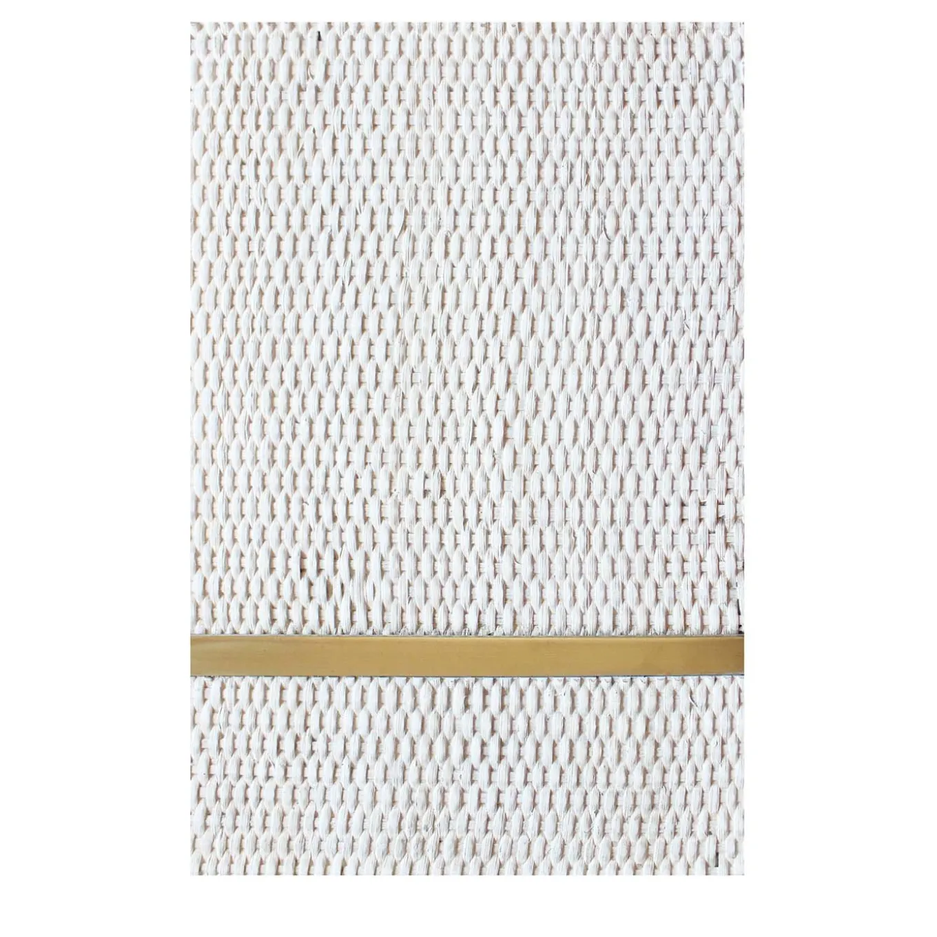 This decorative panel gives off a calming look with a delicate pattern thanks to woven straw and a single brass insert laying vertically across the lower half. The medium density fiberboardused as the base of this panel is fireproof and waterproof, while the straw is lacquered with a grey color, giving this piece a modern and elegant vibe.