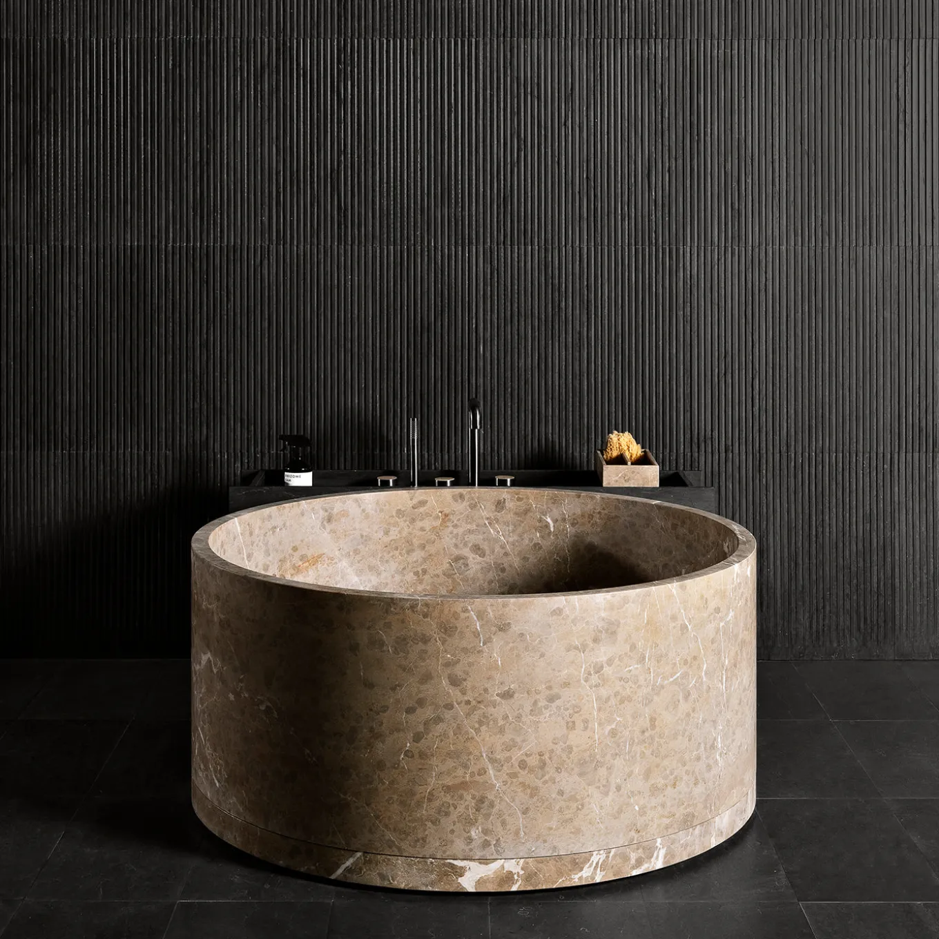 The Passage bathtub combines an elegant geometric design with versatile functionality, creating a refined focal point for bathrooms. Its smooth, circular form complements the Passage console units, allowing seamless integration with storage elements. Available in multiple marble options, this bathtub suits both residential and hospitality environments, offering diverse possibilities for cohesive, sophisticated bathroom compositions. Contact the Concierge for more details.