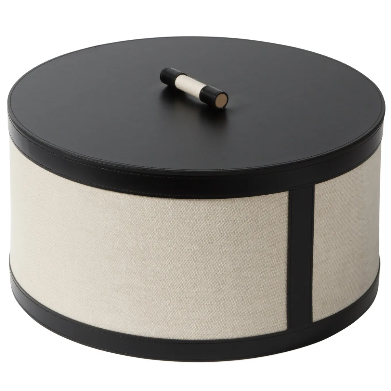 Versatile and sophisticated, this exquisite small basket with lid will provide a modern or contemporary home with precious storage space, while also adding an elegant touch to any room it is placed. Ideal to store laundry in style, this piece features a round silhouette upholstered in off-white cotton fabric all around with inserts in faux leather, also covering the lid. This unique object of functional decor is available in three different sizes and also without lid, customizable with other colors from Pinetti’s leather collection “Antibes”. Please ask the Concierge for details.