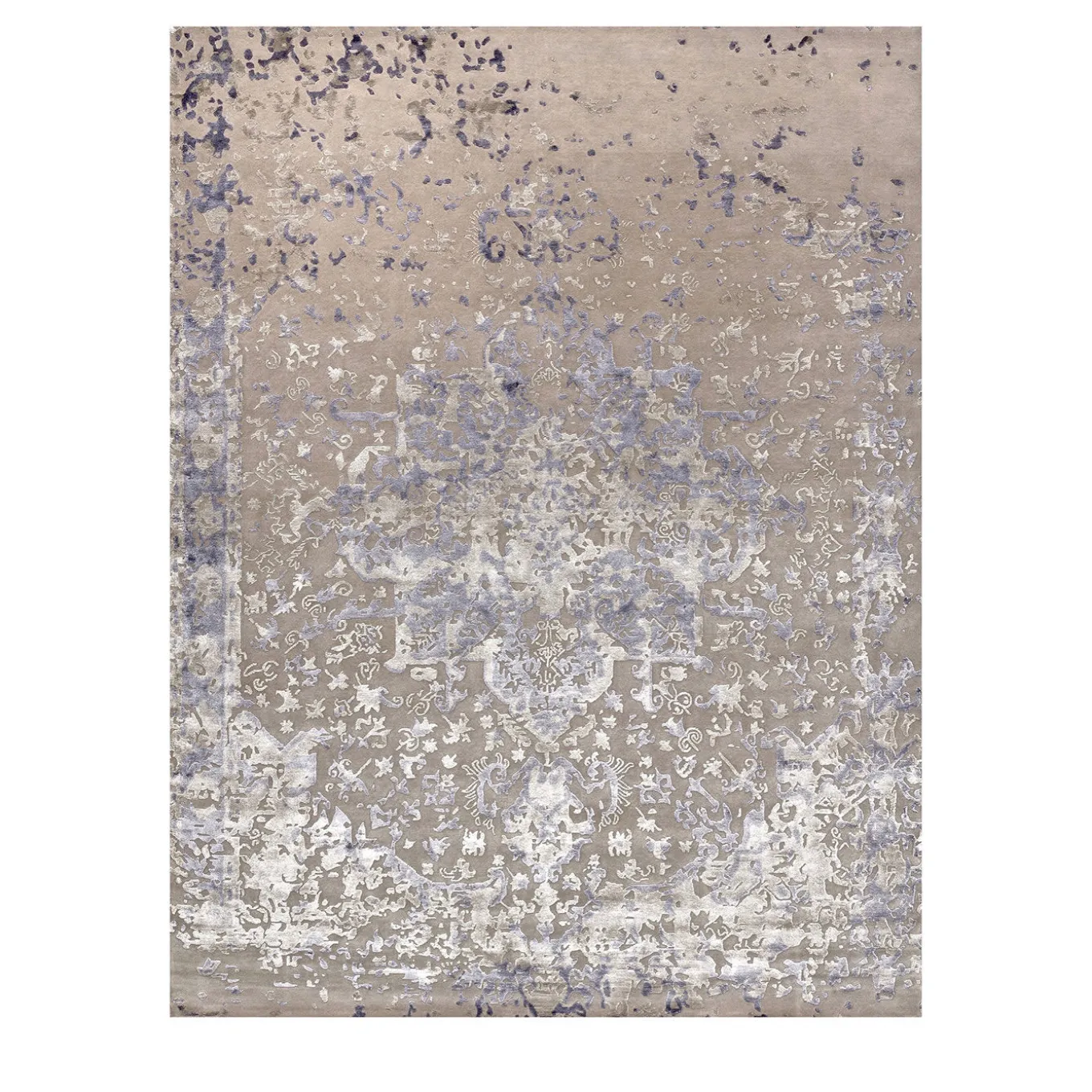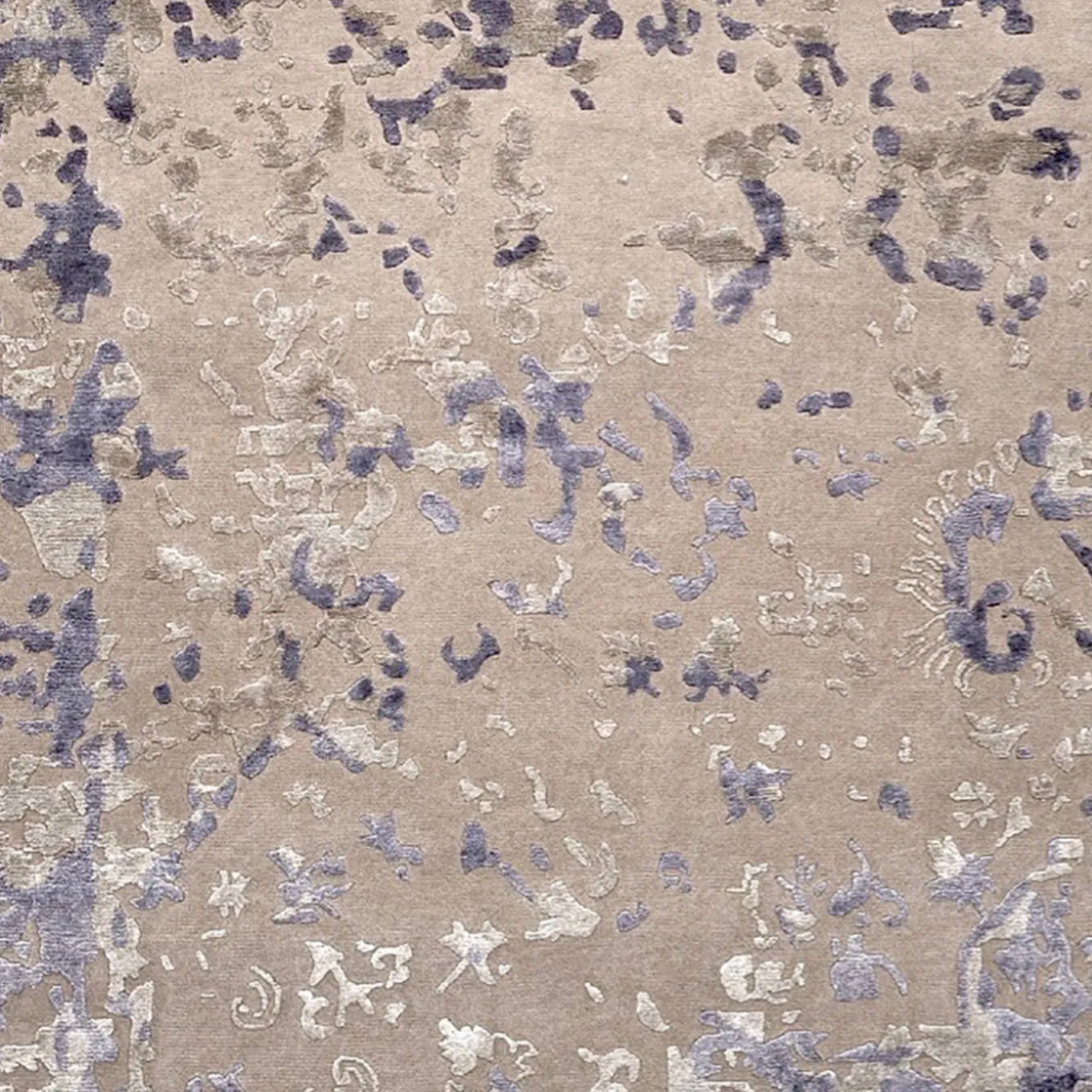 This enthralling rug displays a taupe base (H .05cm) in Himalayan wool with a shimmering silk decoration (H .07cm) reminiscent of the grandeur of the Persian Empire. Hand-knotted by skilled weavers in Nepal, it will uplift any decor with its distressed and impeccably finished texture of great luminosity. This 152,000 knot/sqm rug can be widely customized and requested in its stain-resistant variant by contacting the Concierge.