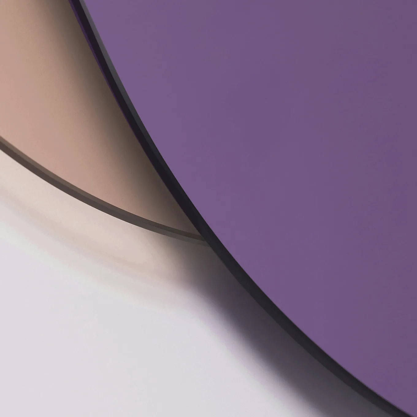 Personale Her Big is a large-format wall mirror designed to enhance expansive walls with a striking presence. It uniquely combines satin-finished pink glass with a violet mirror, creating stylized lines that evoke abstract faces. This sculptural piece offers a personal reflection and serves as an artistic element in any room. The mirror is customizable in size and color, allowing selection from a dedicated palette or bespoke shades. Contact the Concierge for further information.