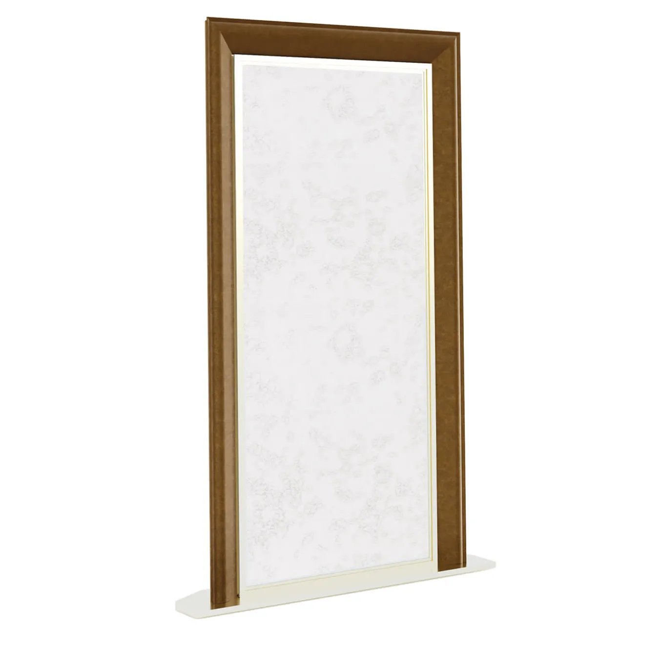 An elegant accent to a contemporary bedroom or walk-in closet decor, this freestanding mirror is distinguished by a sleek and clean rectangular frame upholstered with leather and a LED-lit profile. The base is made of champagne-finished metal. Please consult the Concierge for more details.