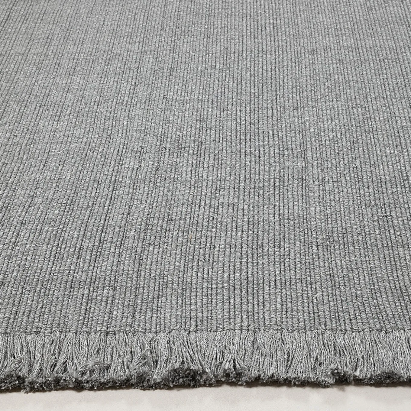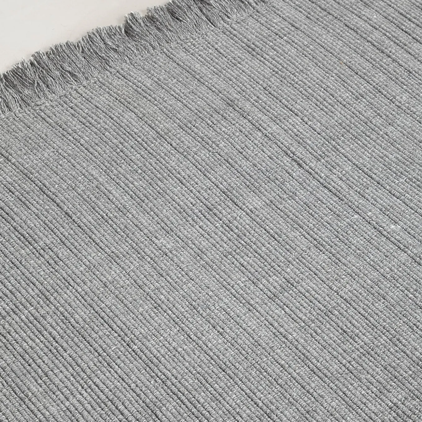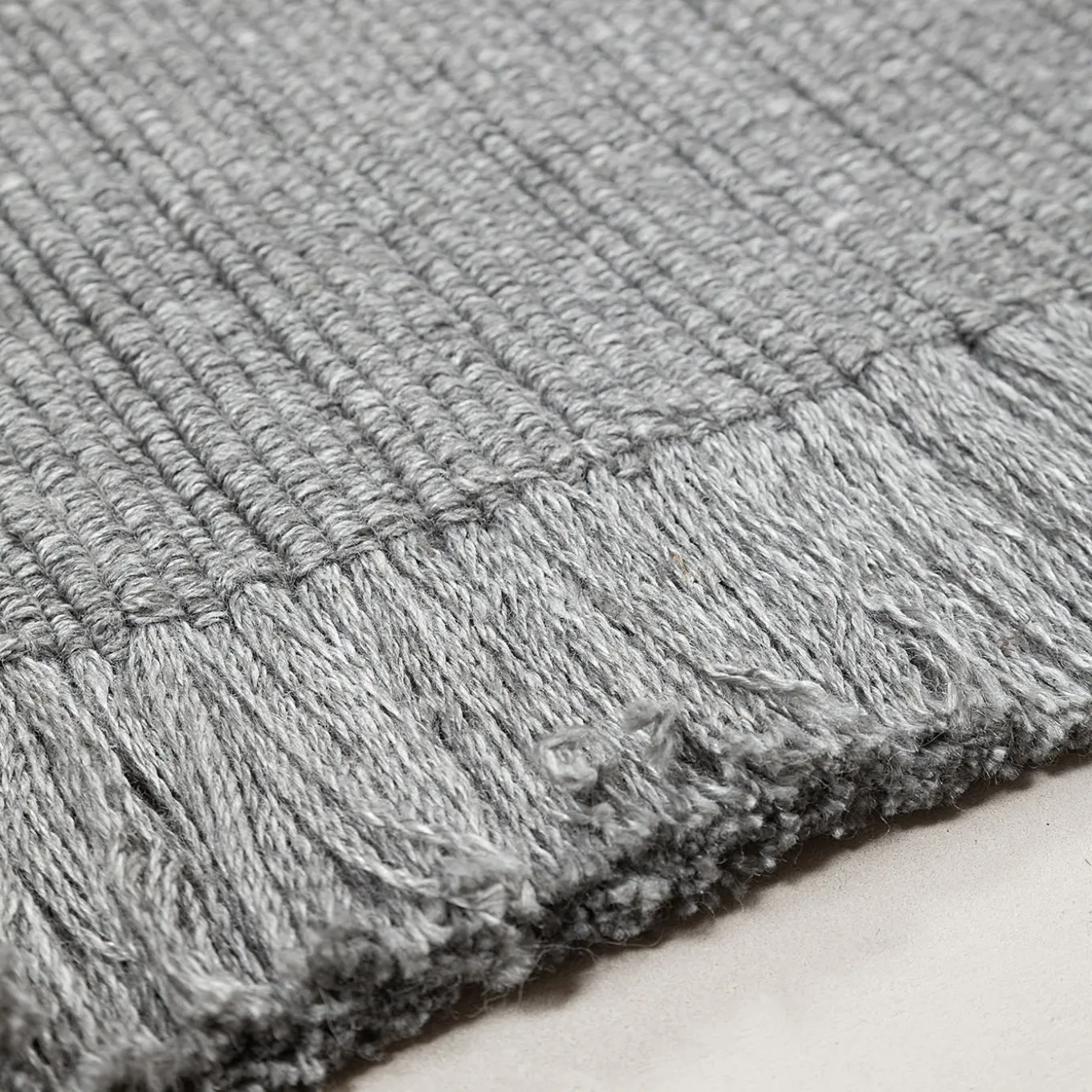 A masterpiece in neutral elegance, this gray flat-woven rug features a subtle interplay of textures, adding depth without overpowering a space. The soft, structured weave provides a balanced mix of comfort and durability, while its raw-edged fringes emphasize its artisanal quality. Designed from 100% recycled PET, it stands as a symbol of sustainable innovation, blending modern simplicity with timeless style. Suitable for both outdoor and indoor use.
