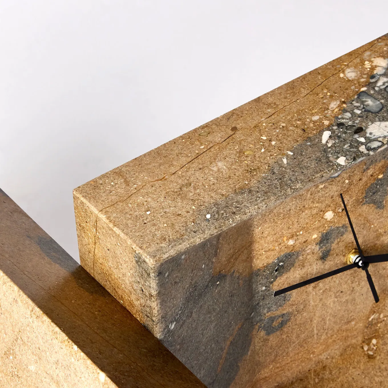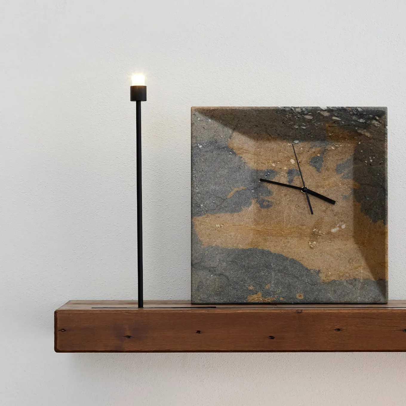 Equally superb sitting on a shelf, desk, or anchored to a wall, this clock obtained from a single block of fine, polychrome marble owes its name and tridimensional shape to Piero della Francesca, an Italian Reinassance painter strongly committed to perspective. The rigor of its volume is counterbalanced by the unpredictable nature of the marble traceries. Batteries are included.