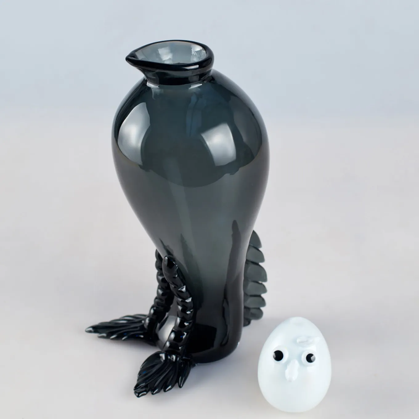 Part of the limited edition Strambotti collection, this pigeon-inspired glass sculpture is inspired by the inimitable glass animal sculptures of 1920’s Murano. Part of the Frères Pigeons set, the piece is crafted in smoky glass, sitting on cut glass feet. The piece is topped with a white head and a quizzical expression. A true collector’s piece.