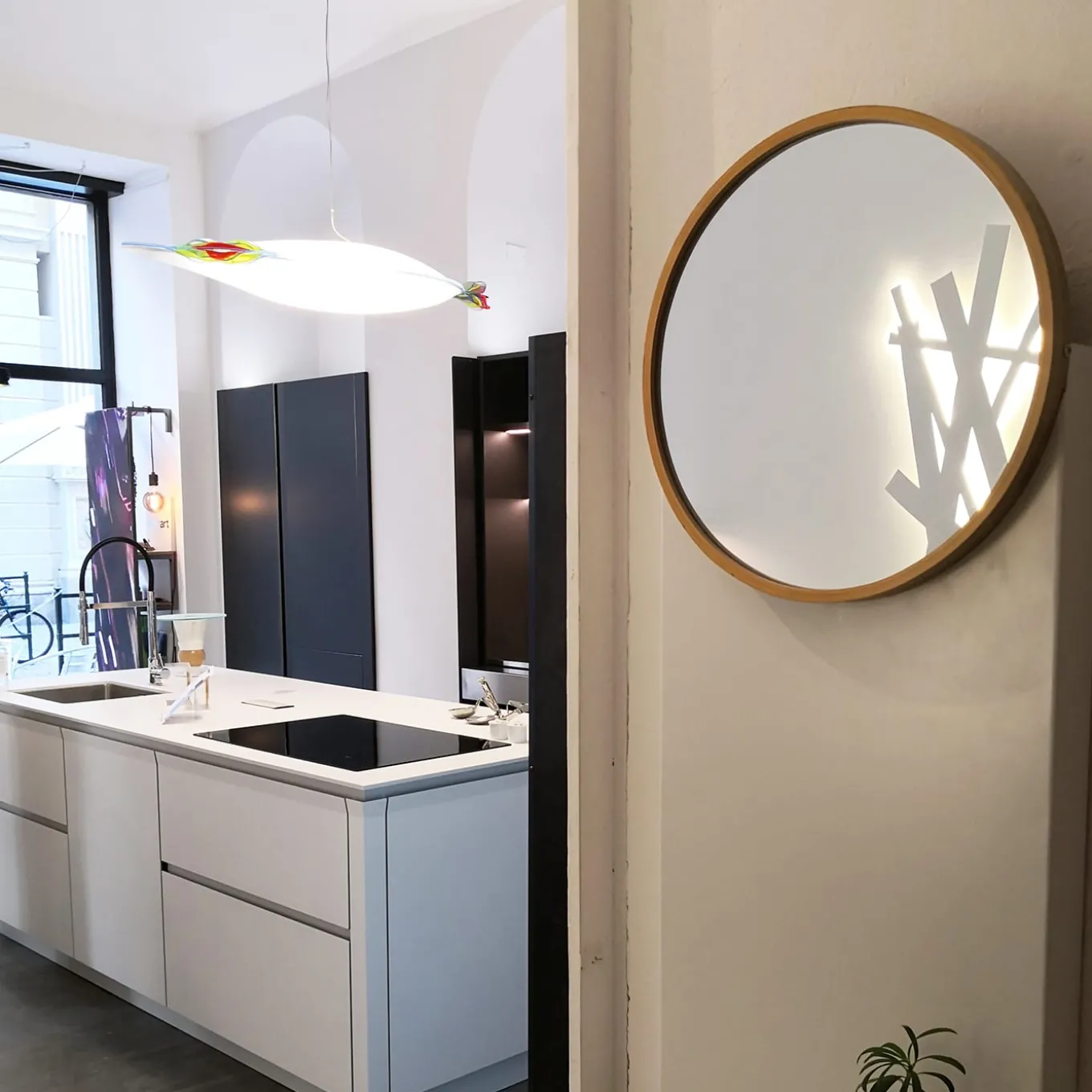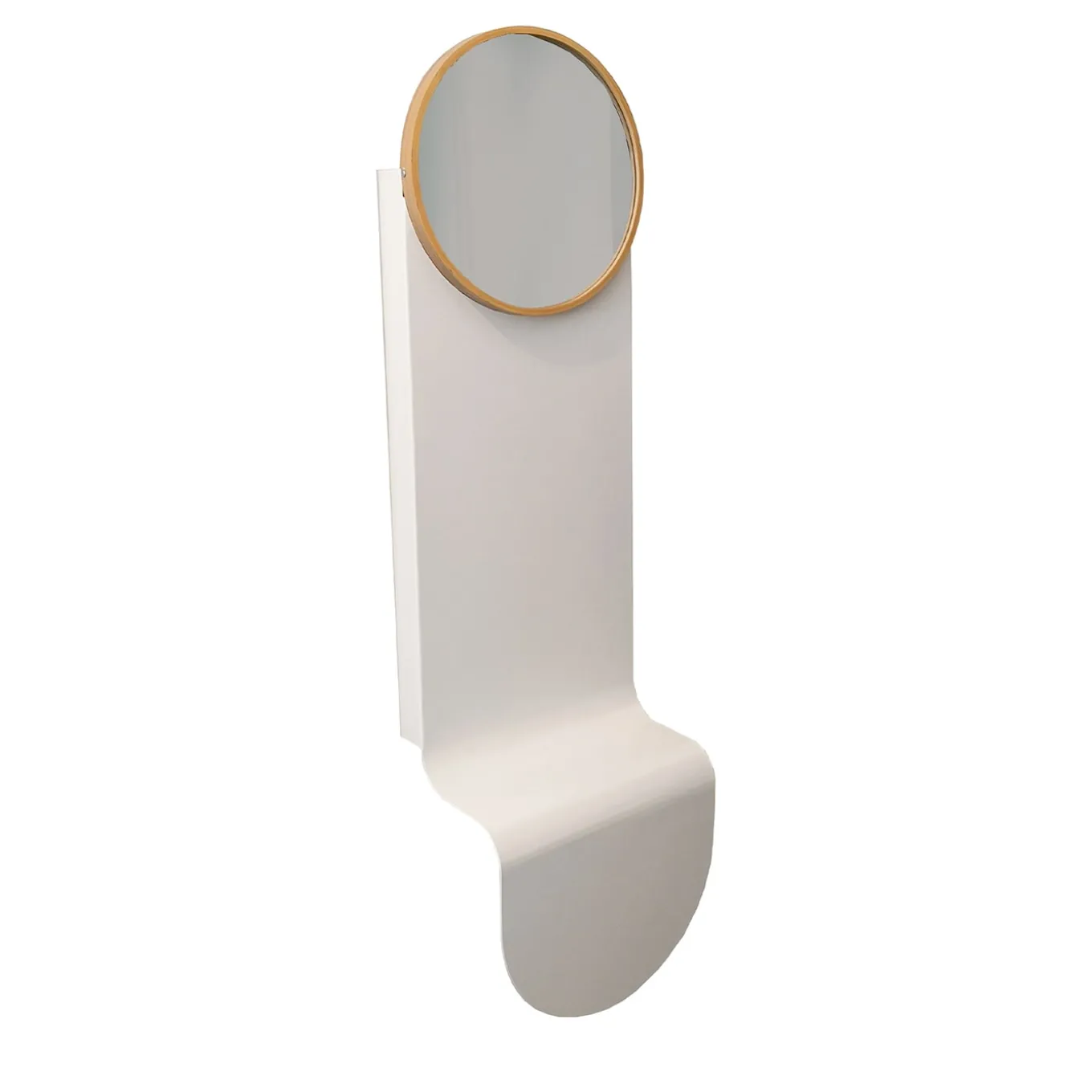 Pink Moon is a multifunctional, linear, refined and attractive furnishing accessory. It contains in a single two versions of itself for two complementary uses. In lacquered iron and wood, it is a mirror with an empty tray in the wall-mounted version. In a few simple gestures it turns from a wall-mounted mirror into a floor-standing object and, thanks to the removable legs hidden at the back, becomes a comfortable and smart workstation. Please, contact the Concierge for further information.