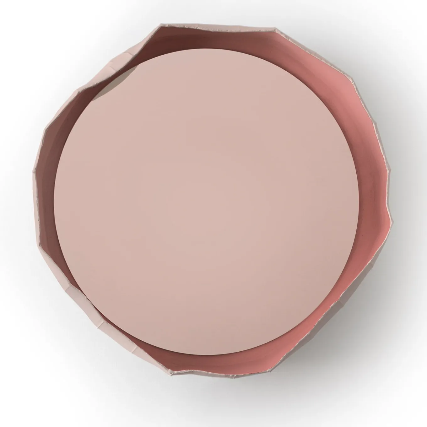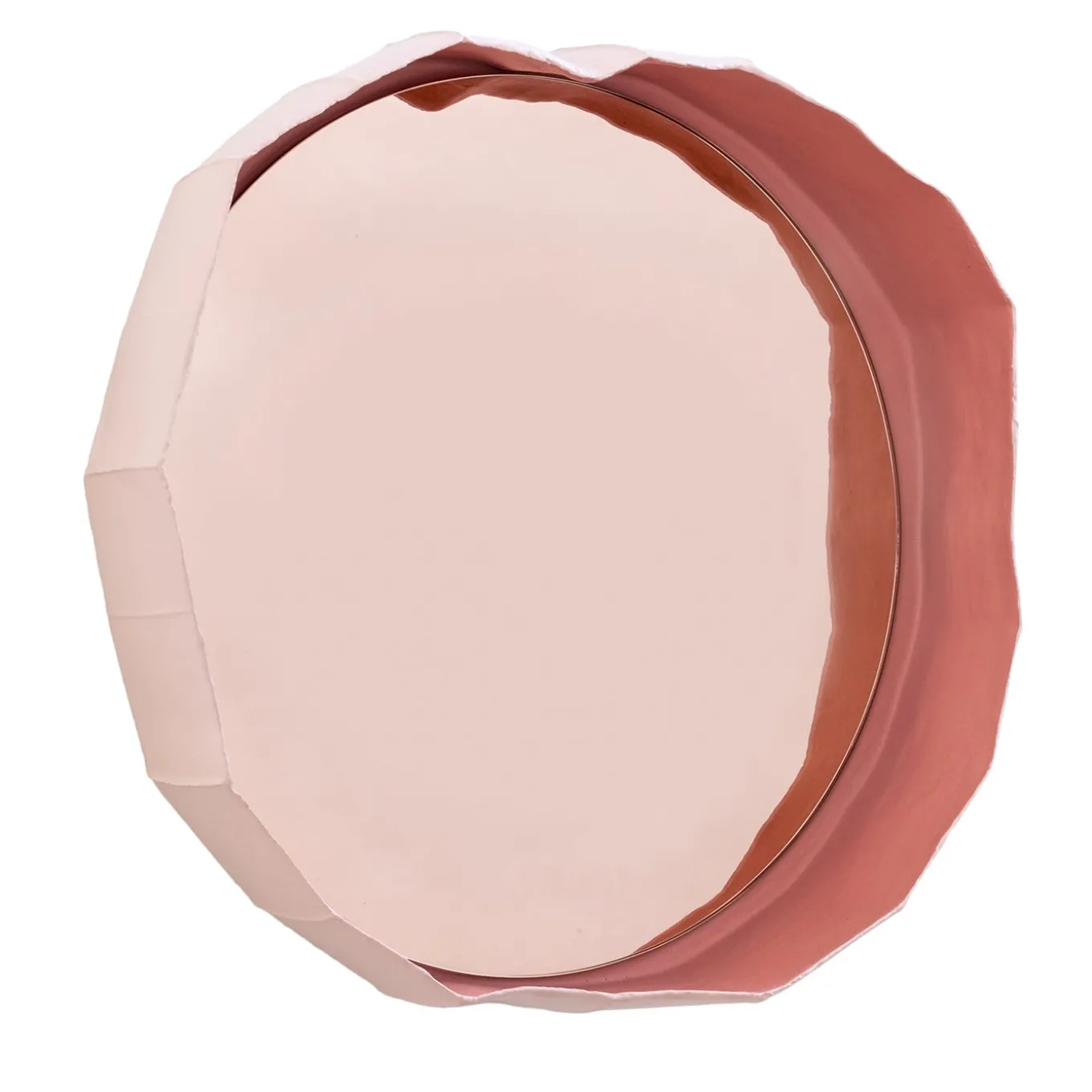 Handmade in Italy by Paola Paronetto & Giovanni Botticelli, this mirror merges ceramic with glass. Ninfea from reflections, a fusion of distinctive materials developed by their creators, unites an apparently light material such as paper clay with the crisp lines of the mirror. The result is a thoughtful and meticulous balance, warm and delicate. The chromatic harmony is purposeful and unites the two materials seamlessly. Available in an extensive palette of colours for bespoke requests.