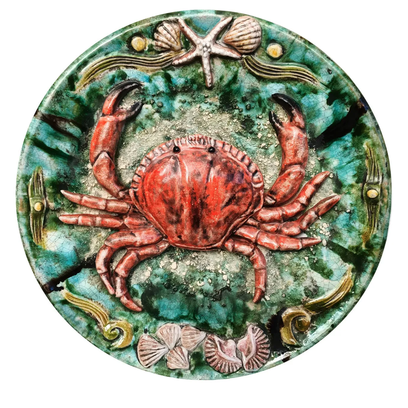Ideal for displaying in the kitchen or dining room, this piece will add character and color among any contemporary decor. Inspired by the talented French ceramist of the 1500s, Bernard Palissy, this captivating Wall Plate is crafted in ceramic and features a design of a large red crab and shells in relief.