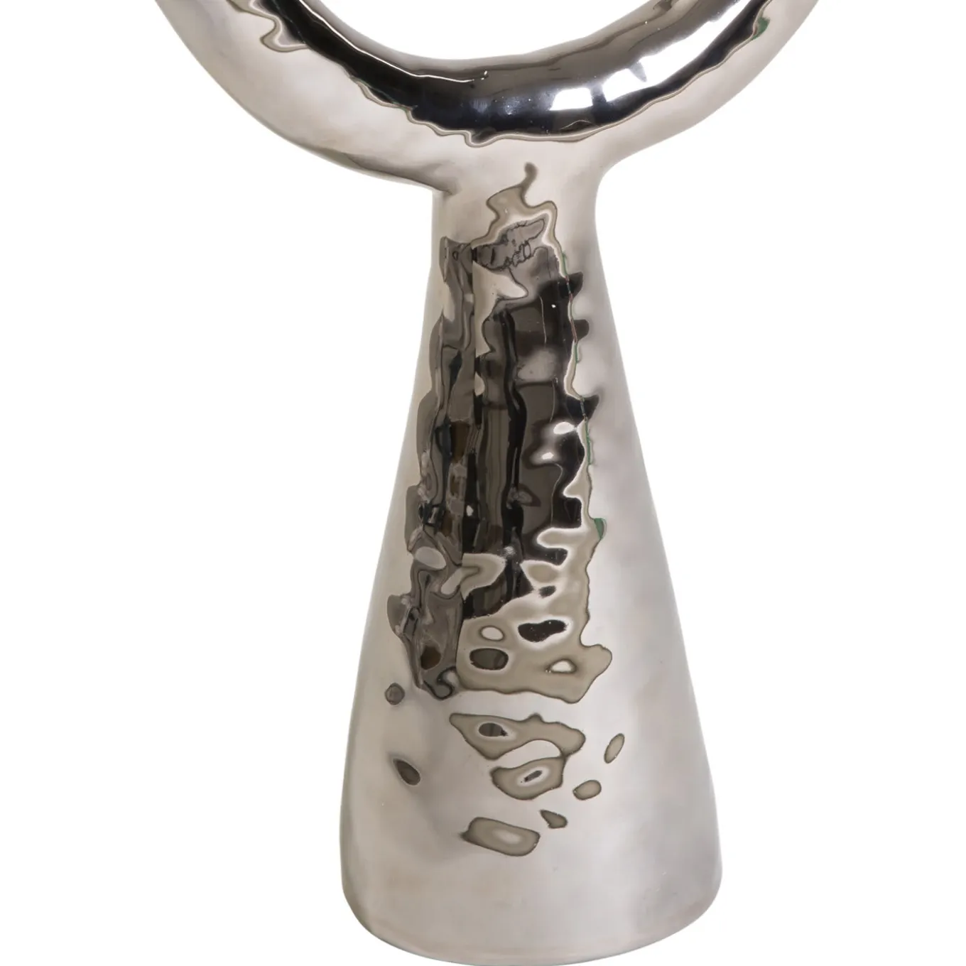 This double candle holder is a classy, modern décor piece by Gatti Ceramica. After the first firing, the maiolica original is hand-painted and then fired for the second time. The piece is finished with pure platinum and a third firing, in accordance with the time-honored techniques of Faenza, the ceramics capital in Northern-Italy.