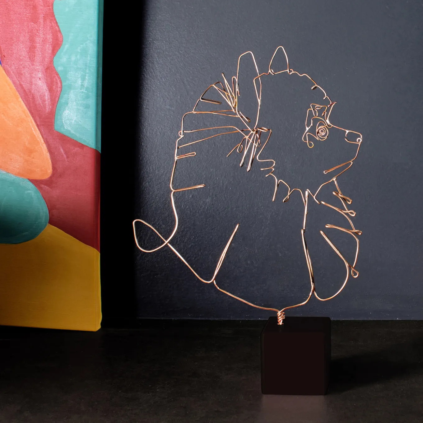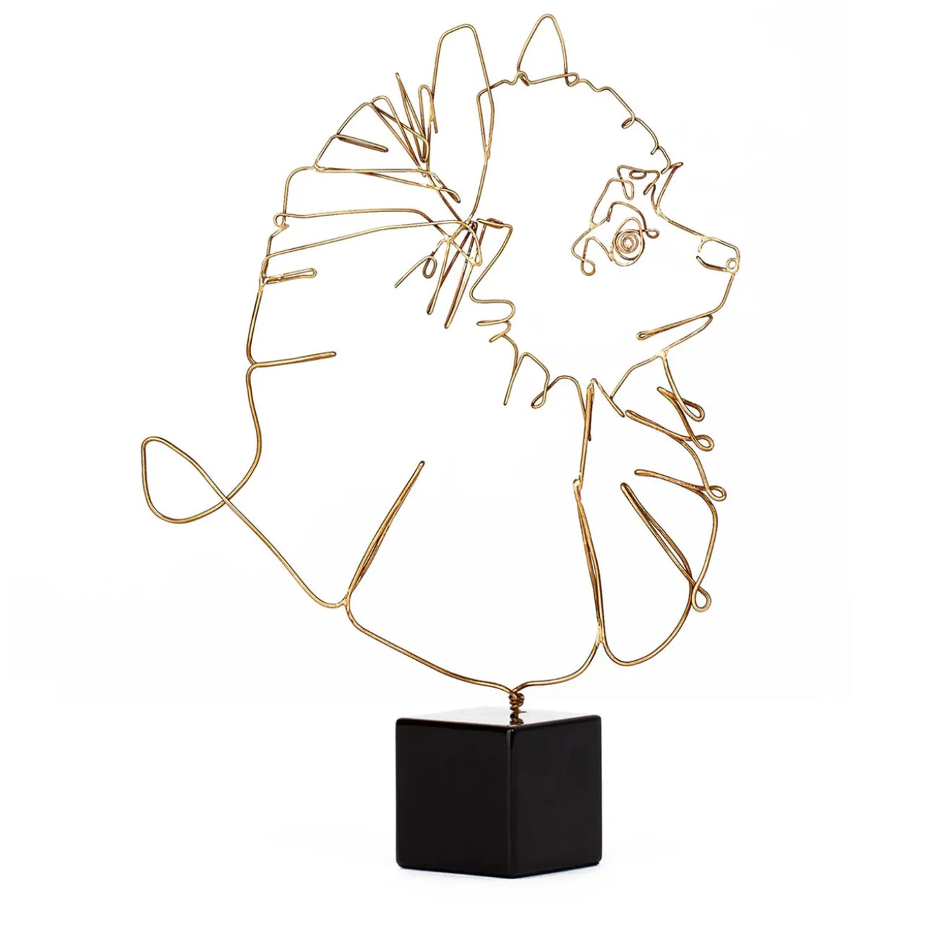 A deftly handmade miniature of a Pomeranian’s snout, this statuette can also be customized with a portrait of one’s own dog, or any other dog breed. An original gift for an animal lover, it is fashioned of bronze wire and supported with a polished black cube base. Other 69 dog breeds are available, please ask the Concierge for more information and customization options.