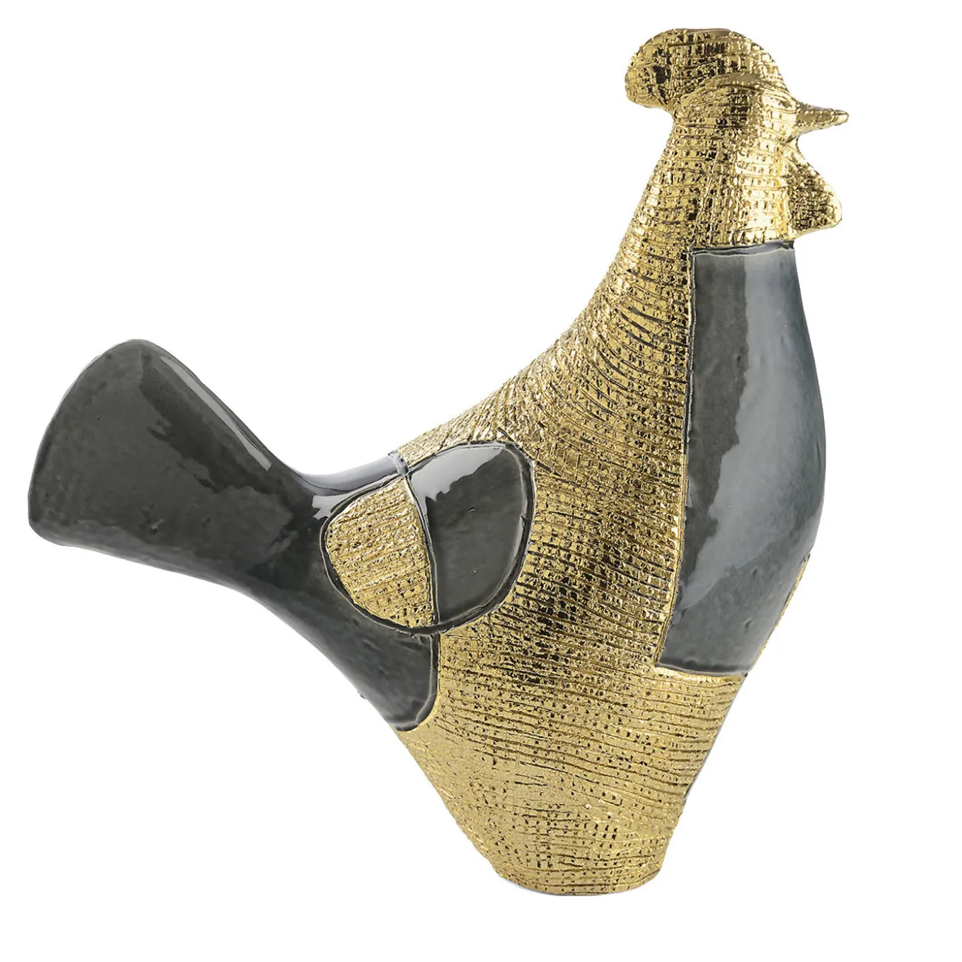 A classical silhouette with a modern twist, this stylized sculpture of a rooster exudes timeless elegance. Best showcased as a centerpiece on a table or console, the curved silhouette and delicate beak, regal crest, and closed tail feathers are entirely handmade of ceramic with natural and metallic glazes. Reminiscent of modern art, the abstracted interplay of the smooth, blue glaze and the textured, bronze-colored enamel captures the rough quality of bird feathers, enriching the composition.