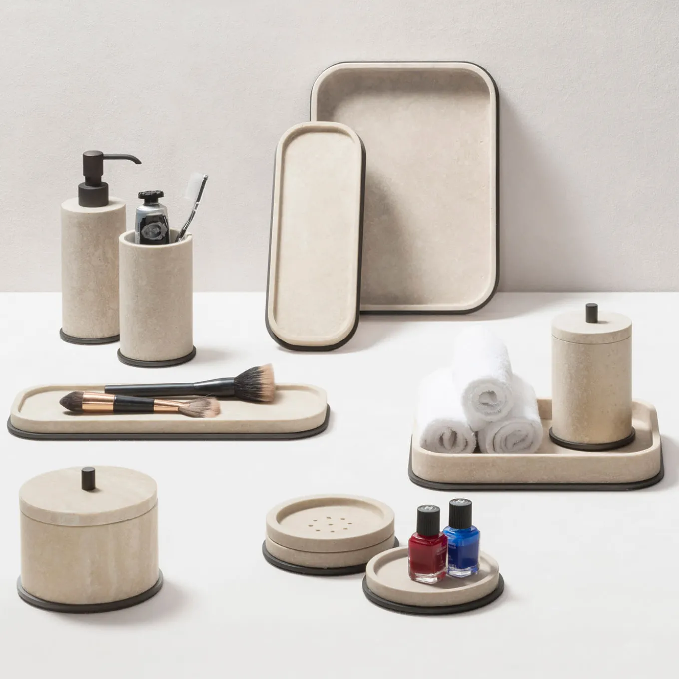 The Positano marble bathroom collection boasts metal details with different finishes-brushed bronze, brushed brass, and polished chrome- that enhance each piece of this set, which is now translated in stone. Every stone used to bring a Positano marble set to life is different from the other, providing a unique, exclusive design to each creation. Marble finishes available: arabescato white / green guatemala / bramosa brown / black portoro / travertino.