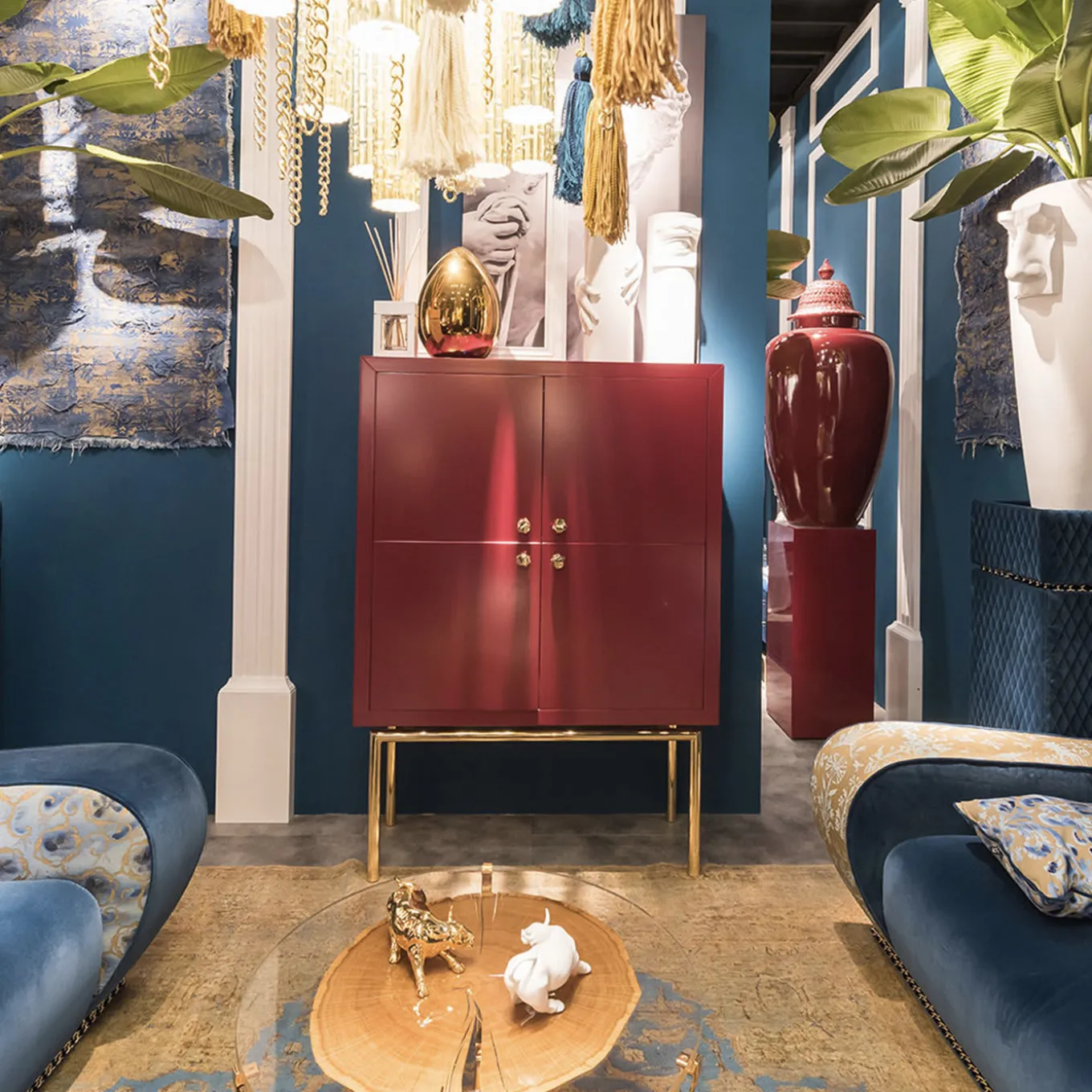 This elegant vase with lid is a stunning decorative piece to display on a console in an entryway, on a mantlepiece in the living room, or in a bookcase in the study. Handmade of ceramic, its imposing size and sinuous body is adorned with a stunning burgundy lacquer finish, that occurs also on the richly adorned lid with a elegant texture that strikingly contrasts with the smooth finish of the vase. This piece will add an eye-catching decoration either on the floor of an eclectic patio or displayed at the center of a large console in a contemporary or classic entryway.