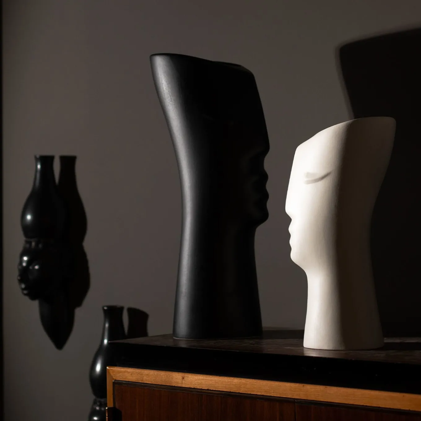 An iconic piece, a historic signature of Italian design. A large vase in white clay, hand cast, with a matte black glaze finish. Designed by Ambrogio Pozzi.