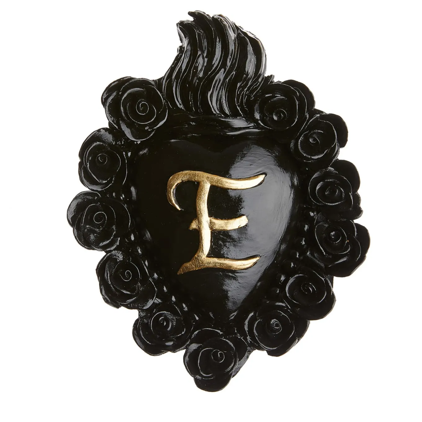 A unique and refined tribute to traditional ex-voto hearts, this stunning ceramic objet d’art is handcrafted and painted with great attention to detail. A personalized initial in pure leaf gold rests within its refined black enamel heart, encased by a frame of stunning black roses. An exclusive gift for a special someone.