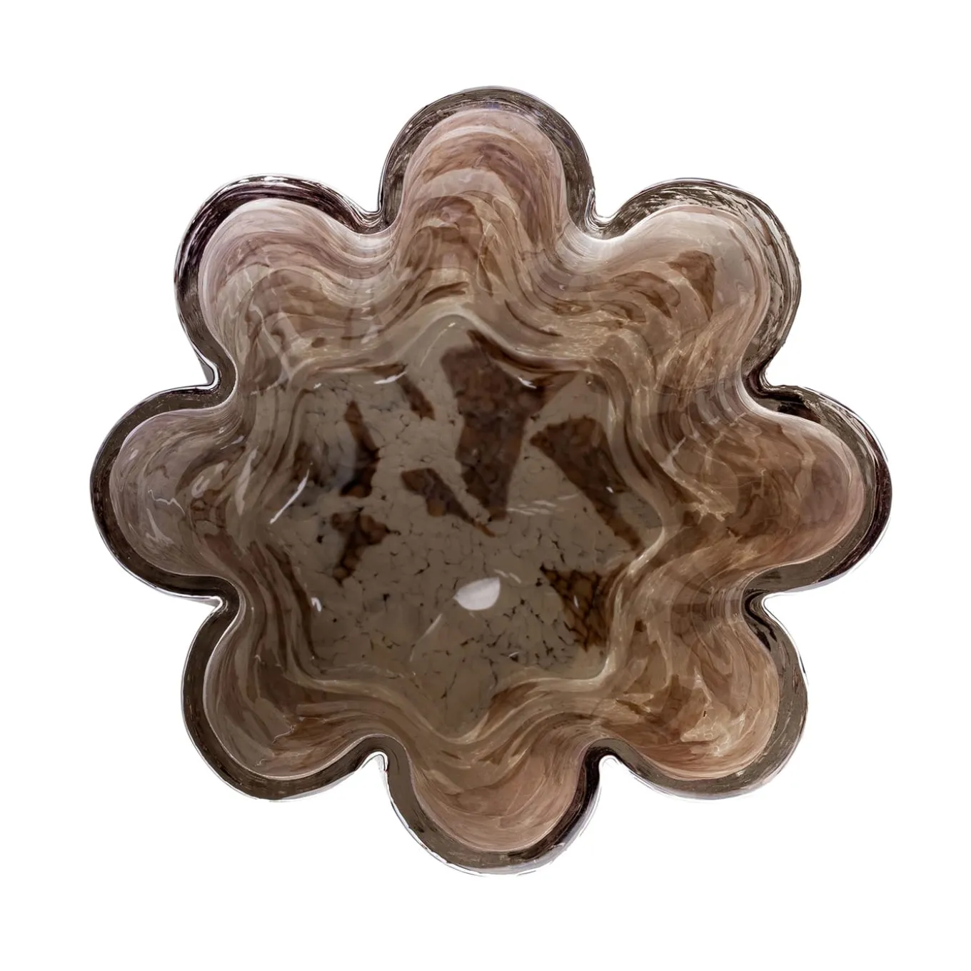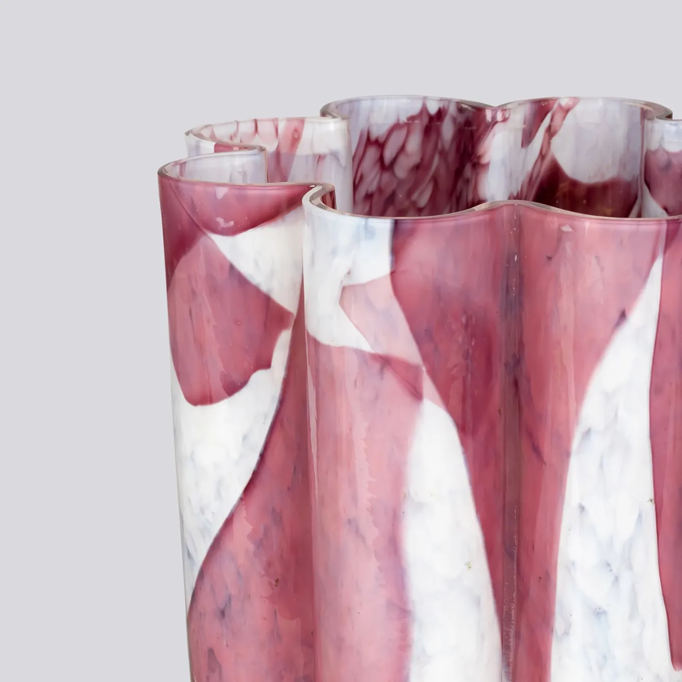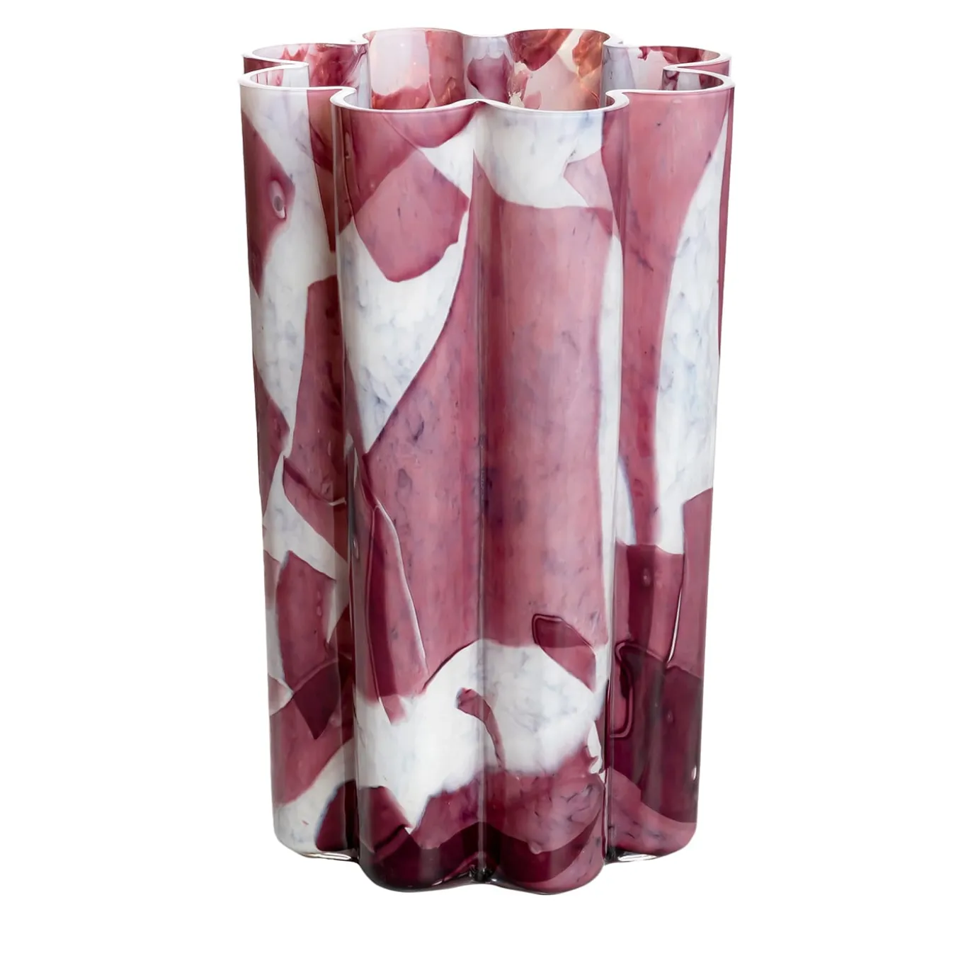 The bucket vase showcases a distinctive, blooming flower silhouette enhanced by a striking fusion of purple and white hues. Its sculptural petal-like edges create dynamic visual depth, while the bold color pattern adds vibrancy to any interior setting. Ideal for contemporary or eclectic decor, this substantial piece serves as a refined focal point, elevating living rooms, dining areas, or office spaces with its artistic presence. Every piece is unique, due to handcrafting slight changes may occur.