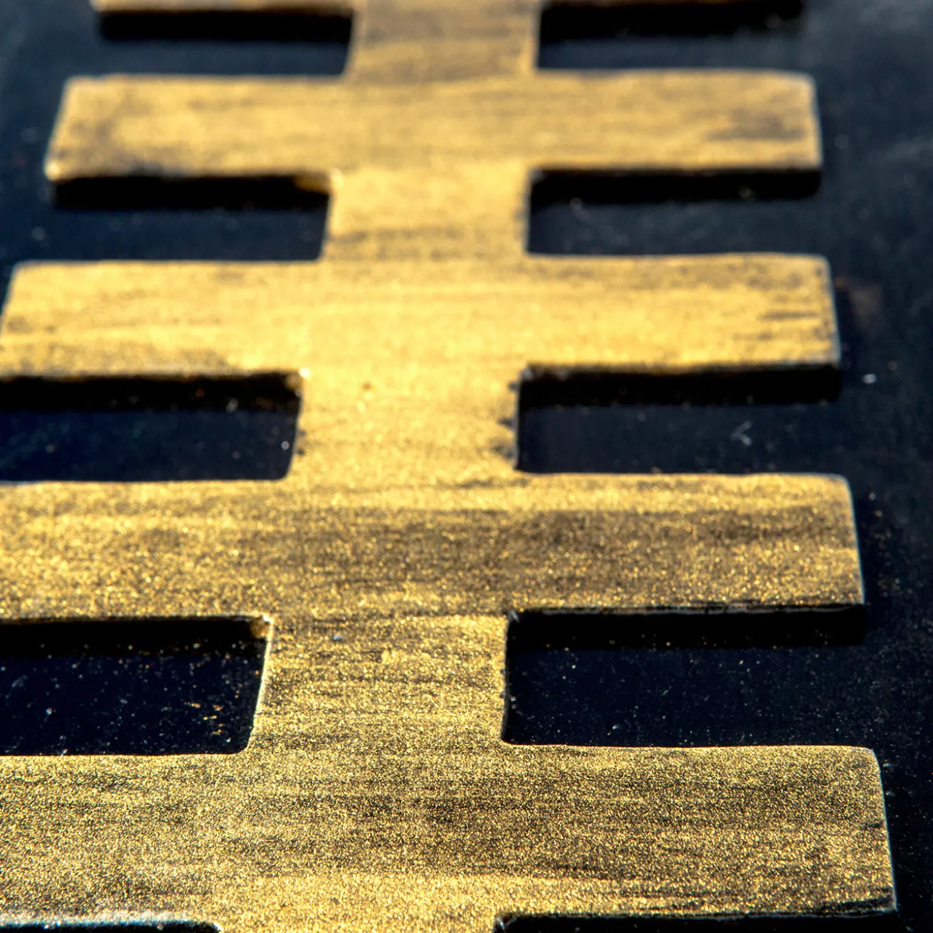 This sculptural piece is a tribute to the textile motifs inspired by the Sardinian tradition elaborated by artist-designer Eugenio Tavolara in the mid-fifties for the female weavers of Sarule, Sardinia. Hand-forged of steel and engraved by hand, the framed square panel features a sun in his glory surrounded by geometric lines whose polished gold tones stand elegantly against the burnished background. The stunning simplicity makes it such a great piece to be displayed on a wall in a modern private studio, living and dining room. Customizations available upon request.