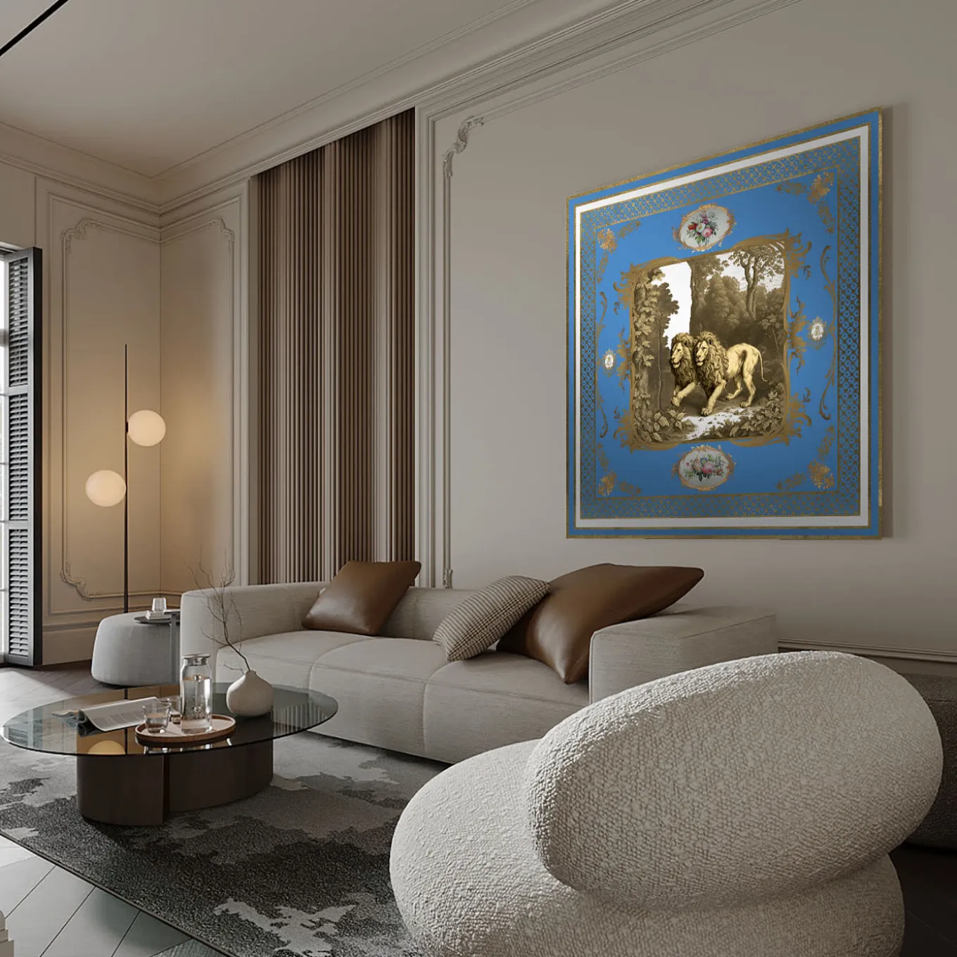 This exquisite wall panel blends classical artistry with contemporary craftsmanship. Printed on Orobond aluminum, it is enriched with hand-applied gold powder, adding a regal touch to its intricate composition. The raised relief technique creates a striking three-dimensional effect, making the artwork visually dynamic. A high-gloss finish enhances the interplay of light and shadow, bringing out the delicate textures and ornate details. A refined statement piece for any sophisticated space.