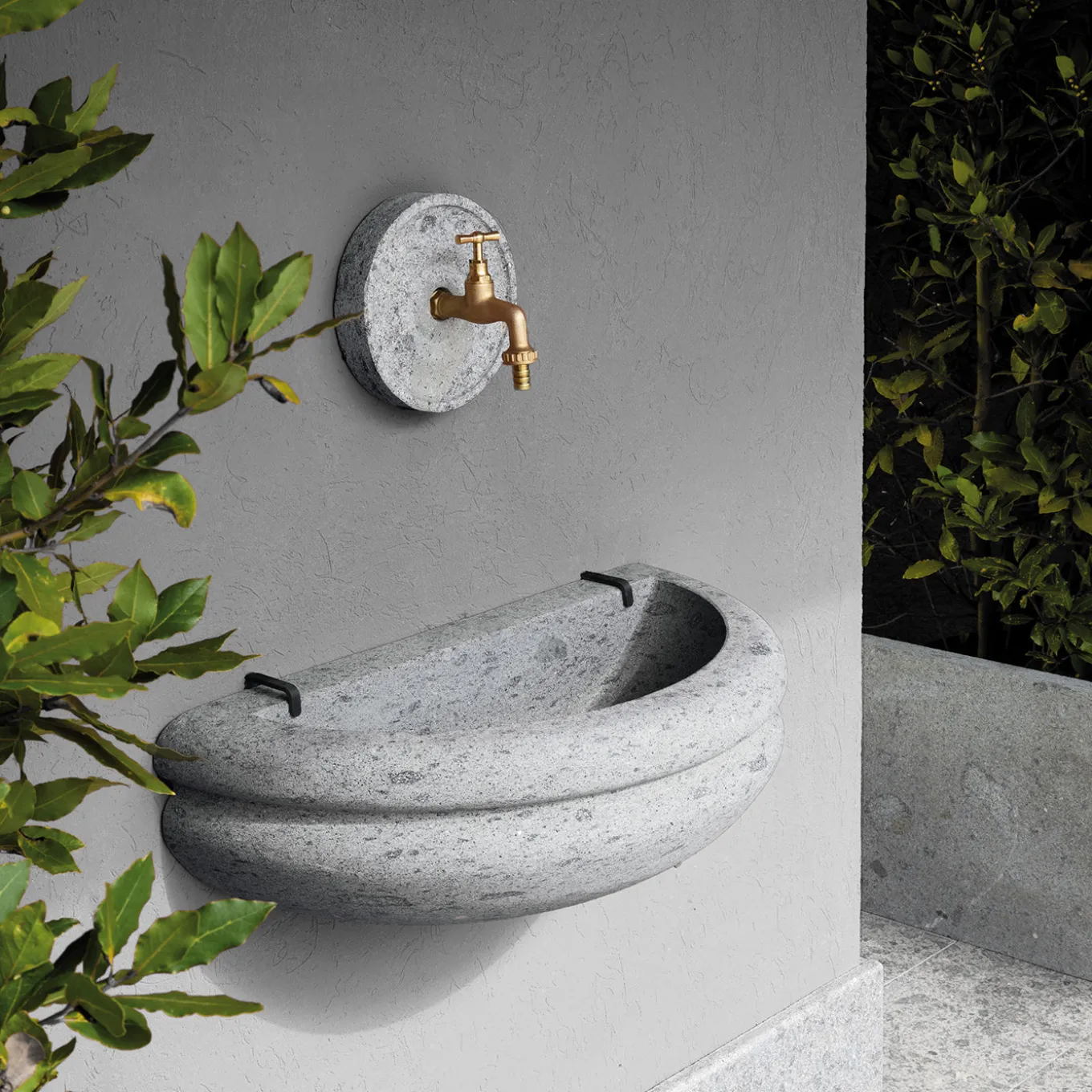 Rasna gray peperino stone outdoor basin