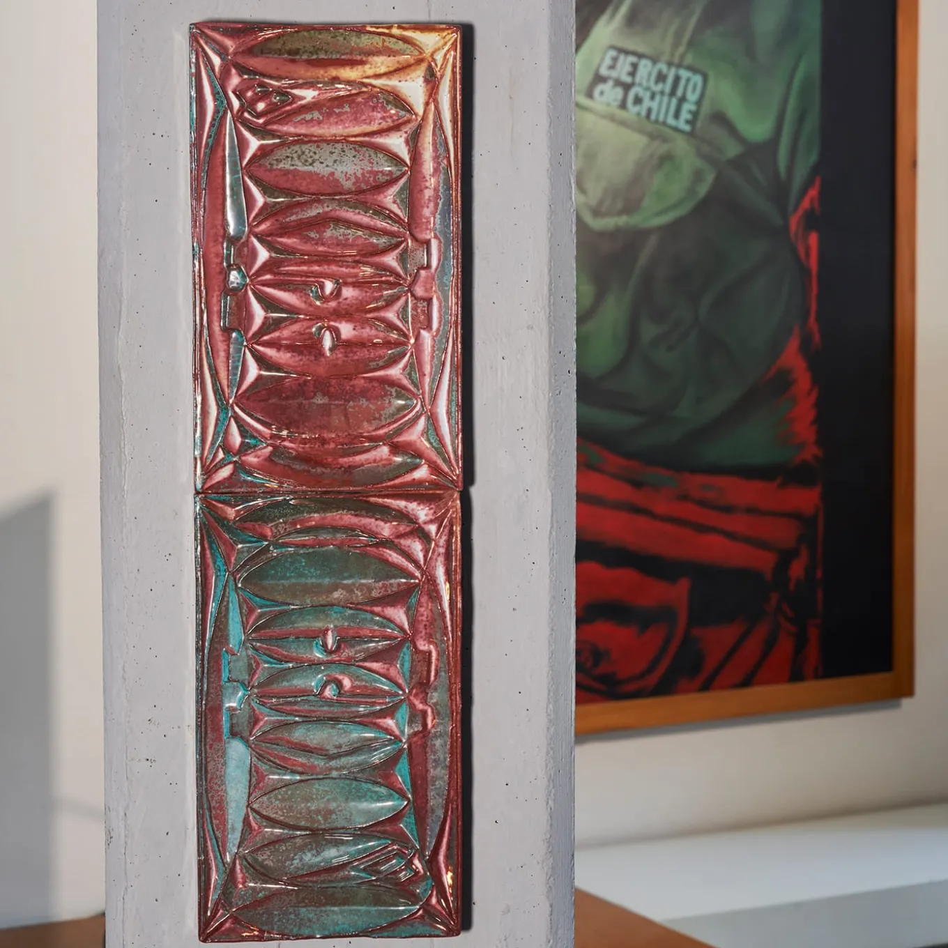 Inspired by molds by Leandro Lega, this rectangular decorative tile in faience belongs to a series designed and selected by architect Marco Scarpa for many of his indoor and outdoor projects. The special second reduction firing brings out from oxides and lusters a special iridescence further enhancing every shade the decoration flaunts. Each tile is a masterpiece that could never have a twin.