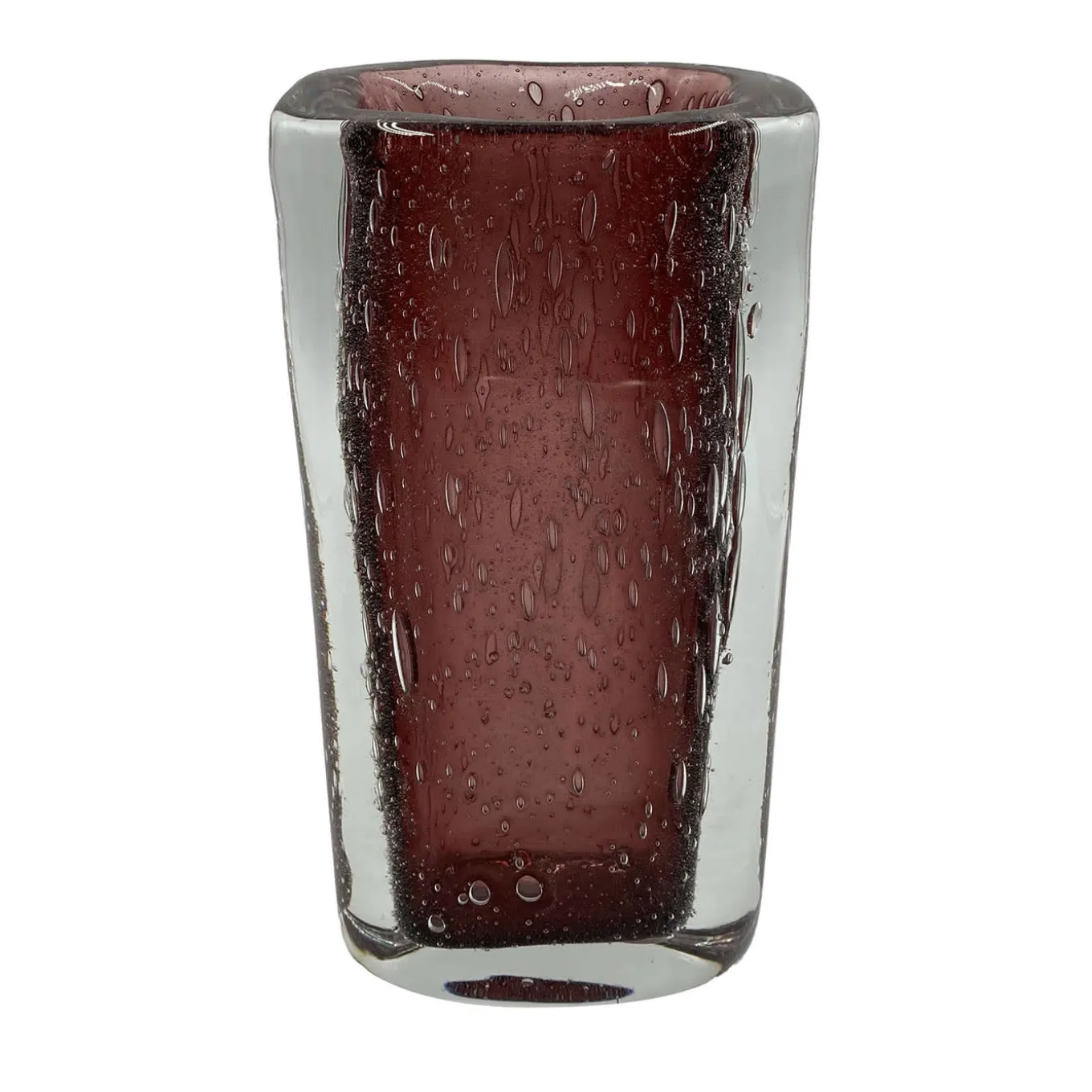 This glass vase is a true masterpiece of artisanal craftsmanship. Thoroughly handblown and hand-shaped by skilled artisans, this stunning piece exudes sophistication and charm. Its rich amethyst hue, reminiscent of precious gemstones, is accentuated by captivating bubbles that add depth and character to its design. As a focal point or a subtle accent, this vase is sure to infuse any space in your home with beauty and style.