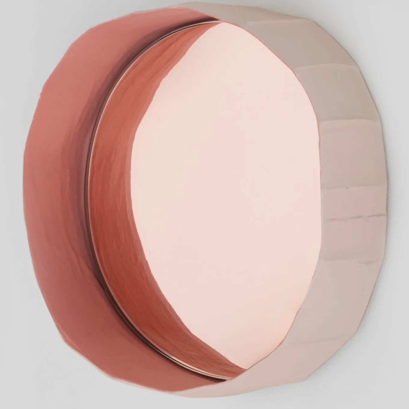 Handmade in Italy by Paola Paronetto & , this mirror merges ceramic with glass. NINFEA from REFLECTIONS, a fusion of distinctive materials developed by their creators, unites an apparently light material such as paper clay with the crisp lines of the mirror. The result is a thoughtful and meticulous balance, warm and delicate. The chromatic harmony is purposeful and unites the two materials seamlessly. Available in an extensive palette of colors for bespoke requests.