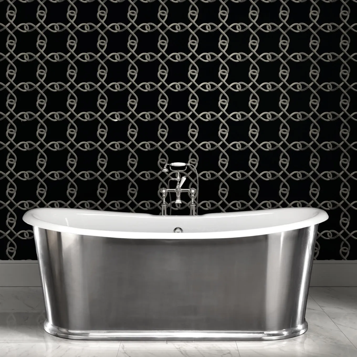 A cast iron bathtub is to be placed in the middle of the room which combines references to tradition, such as the enameled interior, with the contemporary aspects of the external cladding, consisting of polished aluminum leaf. Please, contact the Concierge service for further information.
