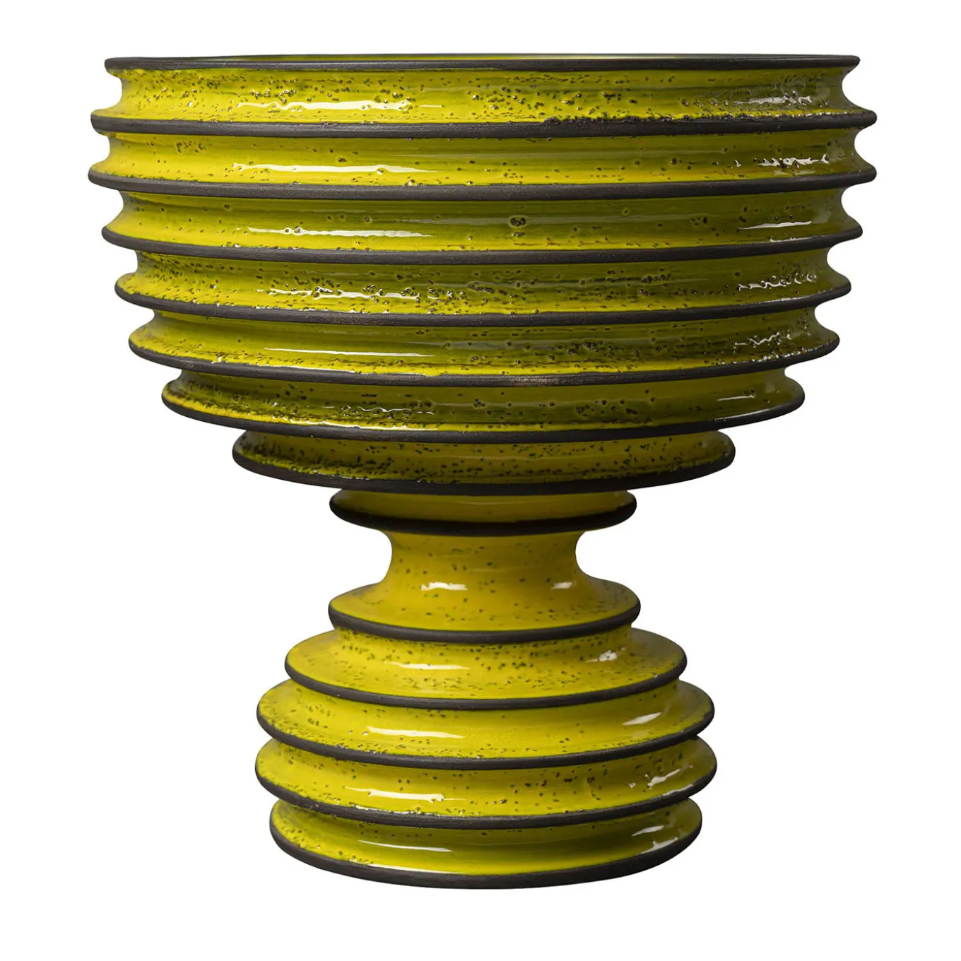 First showcased at the 2019 Milan Design Week like the rest of the Christoph Radl Collection, this exquisite design is a captivating and glamorous take-on antique goblets. Its hourglass-shaped silhouette, enlivened by a pronounced ribbed texture, flaunts a vibrant hue of yellow with conflicting brown corners.