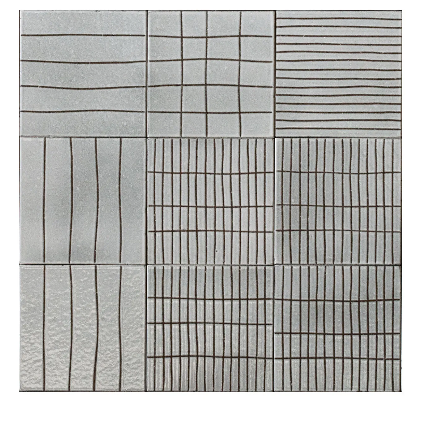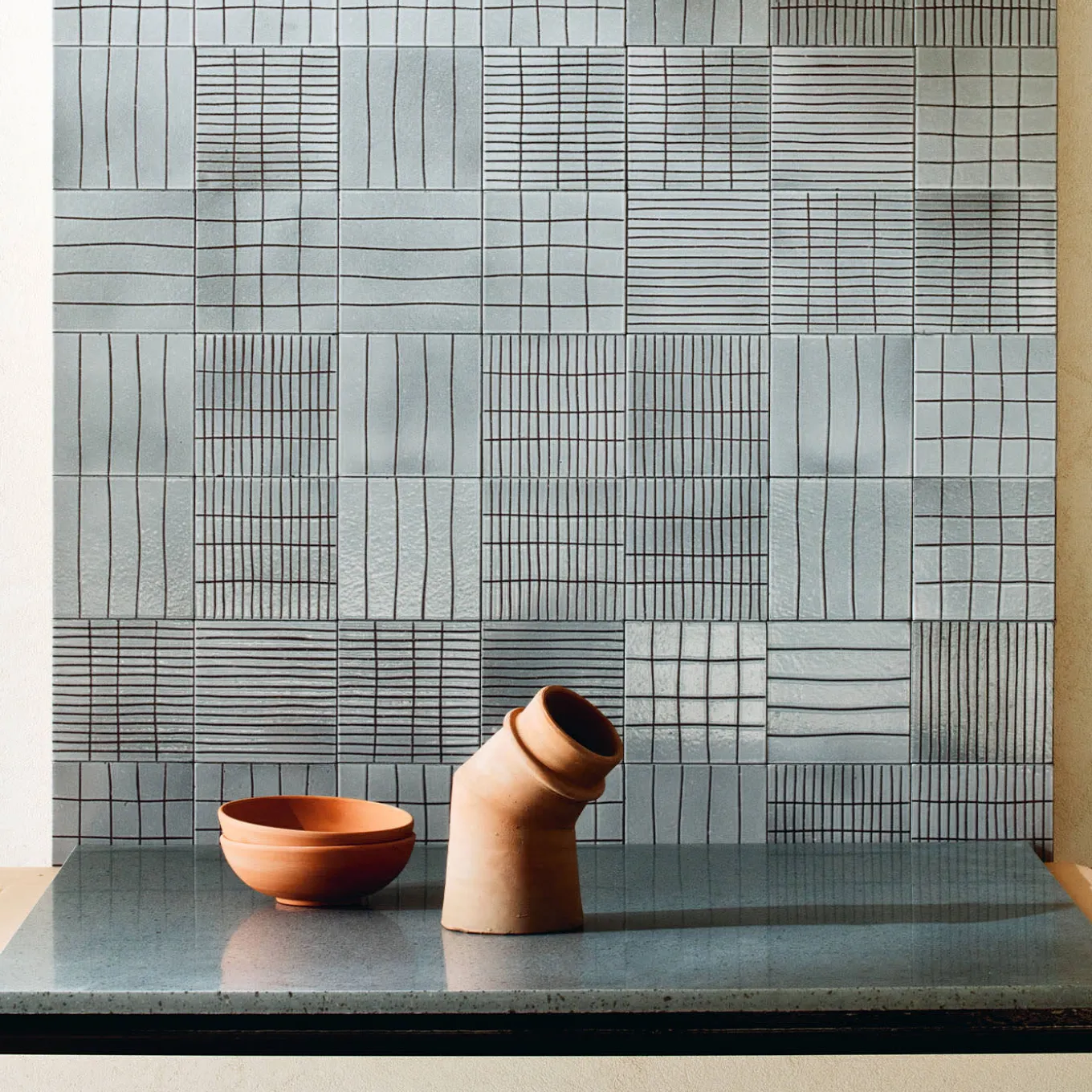 This captivating set of 44 ceramic tiles fashioned of Etna volcano stone boasts a decoration masters Nicolò and Fausto Parrinello handcrafted by tracing etchings into the white-glazed surface. The resulting patterns of intersecting irregular lines give birth to assorted lines that will lend personality to contemporary decors. Each tile measures 15×15 cm.