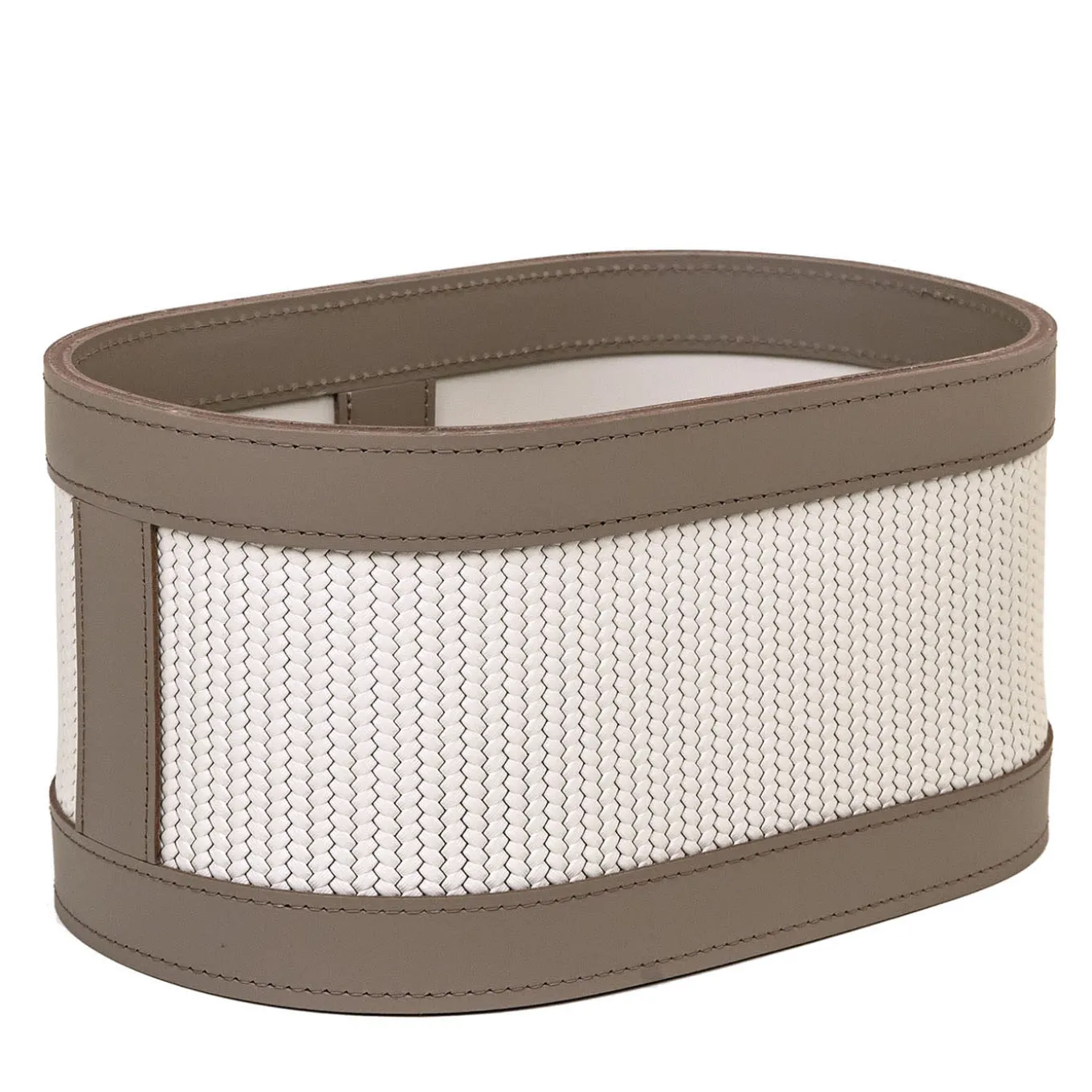 Discover the Roda laundry basket, a sleek addition to the bathroom that strikes the perfect balance between style and functionality. Crafted in square size, it features a woven leather design complemented by smooth surfaces and leather upholstery on both the inside and outside of the basket lid and profiles. Choose from tone-on-tone or bicolour patterns for a customizable touch.