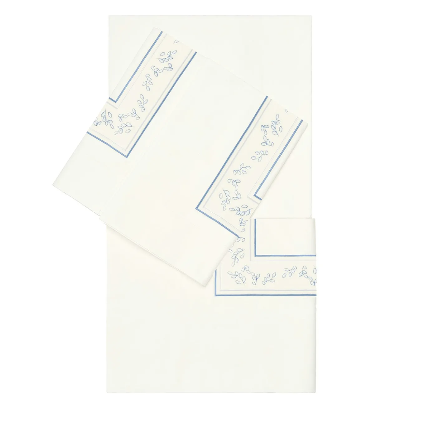 A design which never fades nor goes out of style. For those who dream their nights away basking in beauty. Threads are made of super-fine gauge fibers woven into a crisp yet extremely soft product. Verderoccia sheets are made to dive in, sleeping is optional. A signature embroidery on the new Estremo percale, Made in Italy. 100% Egyptian Cotton. One top sheet, one fitted bottom, two standard shams. Custom-made by Verderoccia artisans. Customizable upon request.