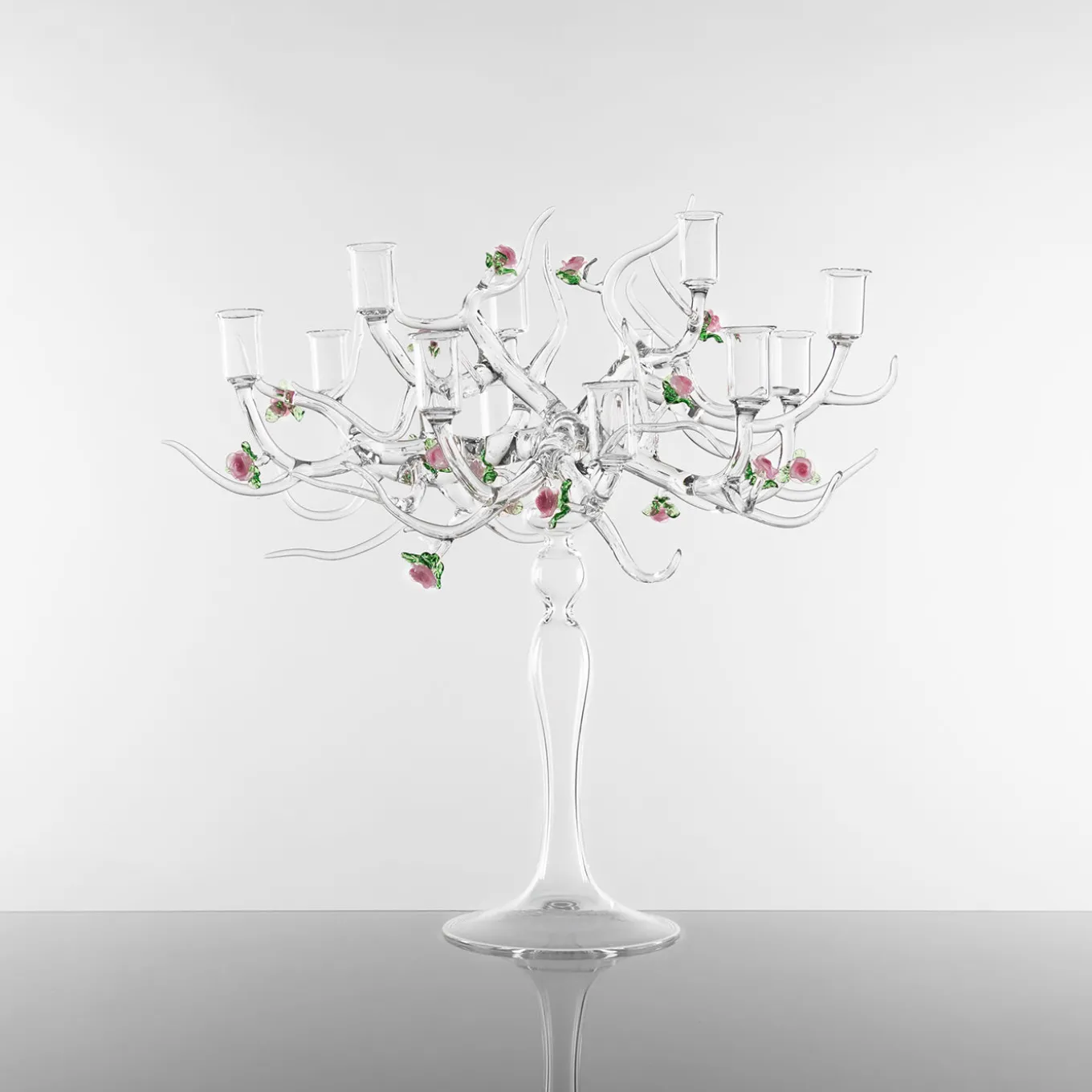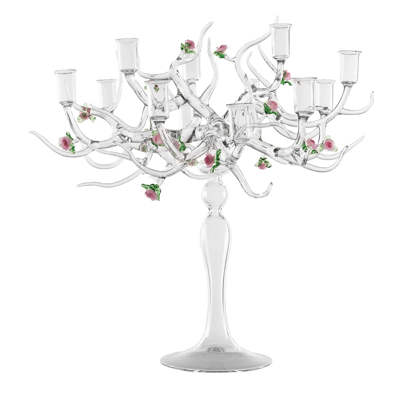 The Rose Candelabra serves as a stunning centerpiece that transcends traditional candle holders. This exquisite piece features a tangle of elegant branches, adorned with delicate floral details that effortlessly bring the beauty of nature into any living space. The crystalline glass construction enhances the visual appeal, showcasing the warmth of soft floral tones, while providing an awe-inspiring luminance when illuminated. Designed to hold 12 candles, this candelabra not only elevates the ambiance in any room but also encourages an appreciation for the transient beauty of nature, merging art and functionality in a remarkable way.