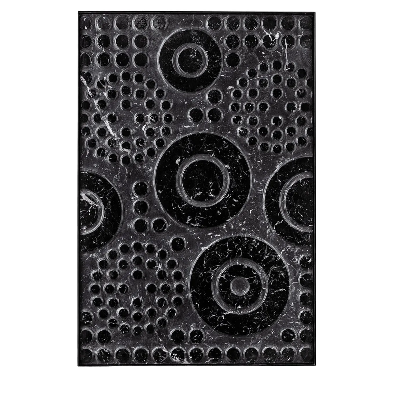 Round in black Marquinia marble is part of an exclusive collection of stone artworks, featuring surfaces developed over time. Each piece reflects the vision of designers such as Michele De Lucchi, Marella Ferrera, and Marco Piva, transforming textures, geometries, and decorative details into true masterpieces. Framed in matte black metal, it is easy to mount and versatile for any space. A tribute to Lithea’s craftsmanship, it blends tradition and innovation. Frame included.