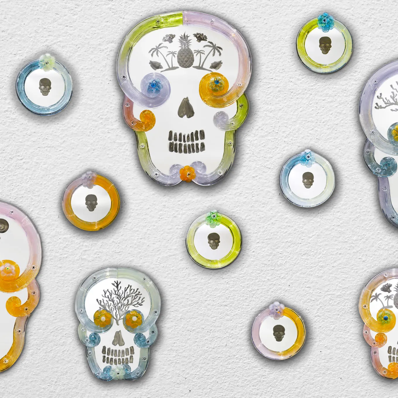 For Milan Design Week 2022, Artemest collaborated with Ongaro & Fuga and artist Bradley Theodore on this one-of-a-kind piece, to be showcased at the exhibition BLOW: Bradley Theodore Meets Murano. This limited edition is available exclusively on Artemest. This mirror has been handmade with a special ombré color palette, achieving a unique effect. Bradley Theodore’s signature skulls have been fully engraved by hand with a traditional diamond wheel, a mark of exceptional craftsmanship. Please note that this exquisite piece is part of the BLOW collection by Bradley Theodore currently on show at Artemest Galleria in New York. The piece will be shipped to you once the exhibition is over, in February 2023.